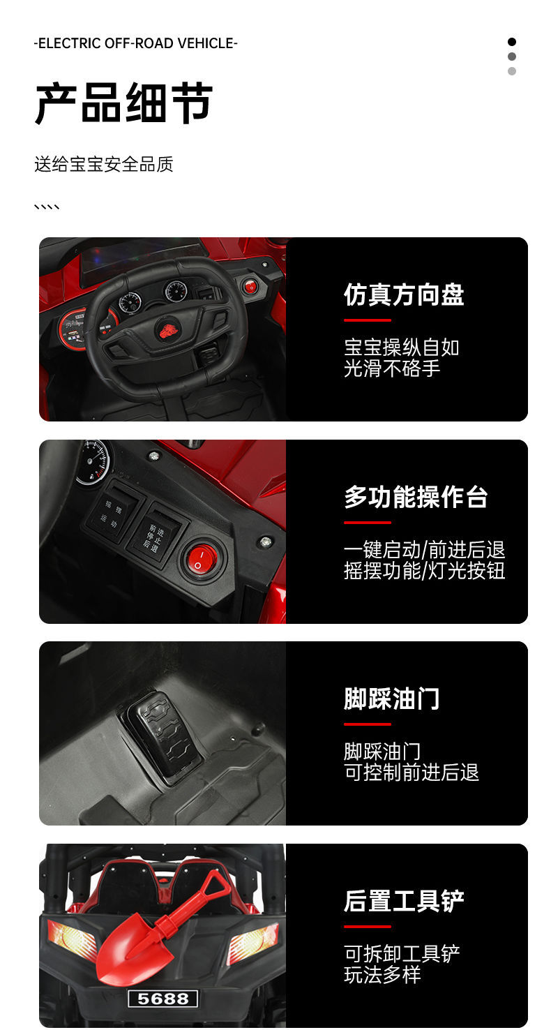 | Color | Coche estándar de tracción única roja + música Bluetooth + coche de control remoto, música Bluetooth de tracción única roja Suprema más control remoto, música Bluetooth de tracción única gris Suprema más control remoto, tracción doble roja Suprema [control remoto bluetooth] Swing + batería súper grande, tracción doble roja Suprema [control remoto bluetooth] Swing + batería súper grande de 12v, batería súper grande de tracción doble gris Suprema [control remoto bluetooth] Swing + batería súper grande de 12v, batería súper grande de tracción doble roja Suprema + batería súper grande de 12v, batería insignia de tracción cuatro + batería súper grande de 12v, batería súper grande de tracción doble roja + función completa + batería súper grande de 12v, batería súper grande de tracción Roja de cuatro ruedas + asiento de cuero + función completa de 12v, batería súper grande de tracción cuatro ruedas motrices + batería súper grande+ asiento de cuero + función completa + batería súper grande de 12v, rojo de pintura a la parrilla de cuatro ruedas + asiento de cuero totalmente funcional + batería súper grande de 12v, azul de pintura a la parrilla de cuatro ruedas + asiento de cuero totalmente funcional + batería súper grande de 12v, música Bluetooth de tracción única blanca Suprema más control remoto, doble tracción blanca Suprema [control remoto bluetooth] Swing + batería súper grande, doble tracción blanca Suprema [control remoto bluetooth] Swing + 12v Batería súper grande, insignia de cuatro ruedas motrices blanca + totalmente funcional + batería súper grande de 12v |