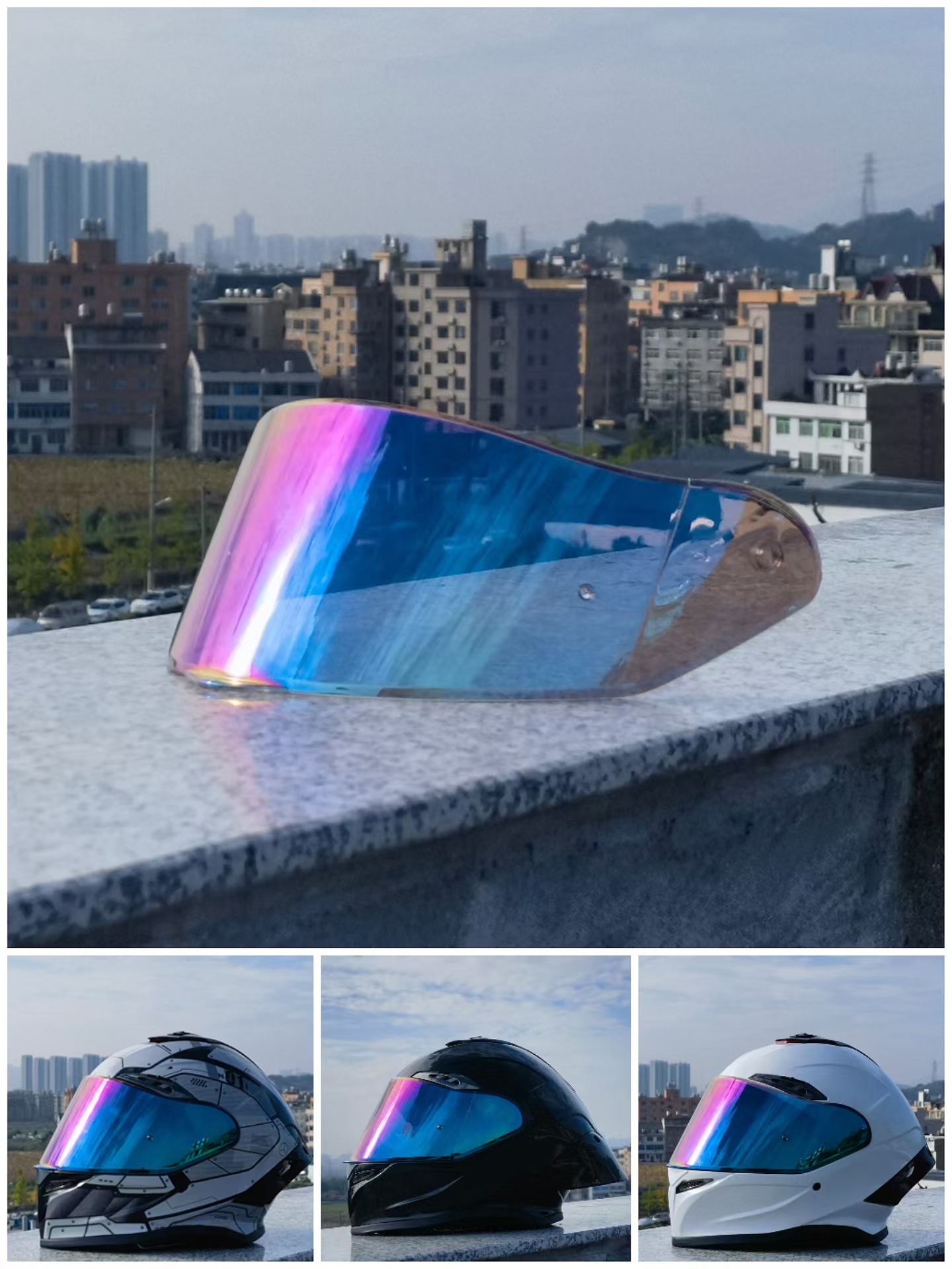 Lente para Casco Ghost Face, Visera para Casco, Lentes Aurora Electrochapadas, Lentes para Casco Integral Universal de Día y Noche, Lentes Dobles para Motocicleta
