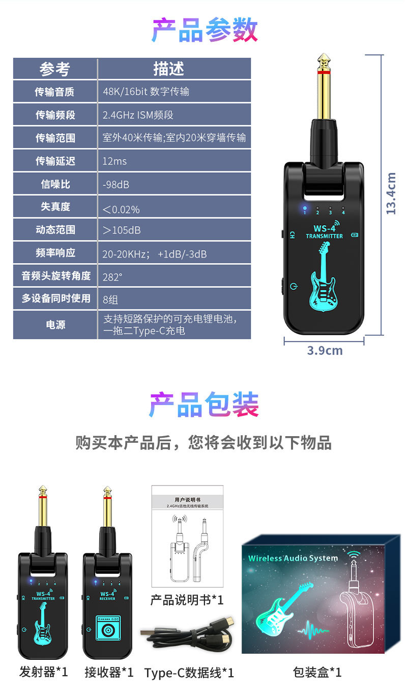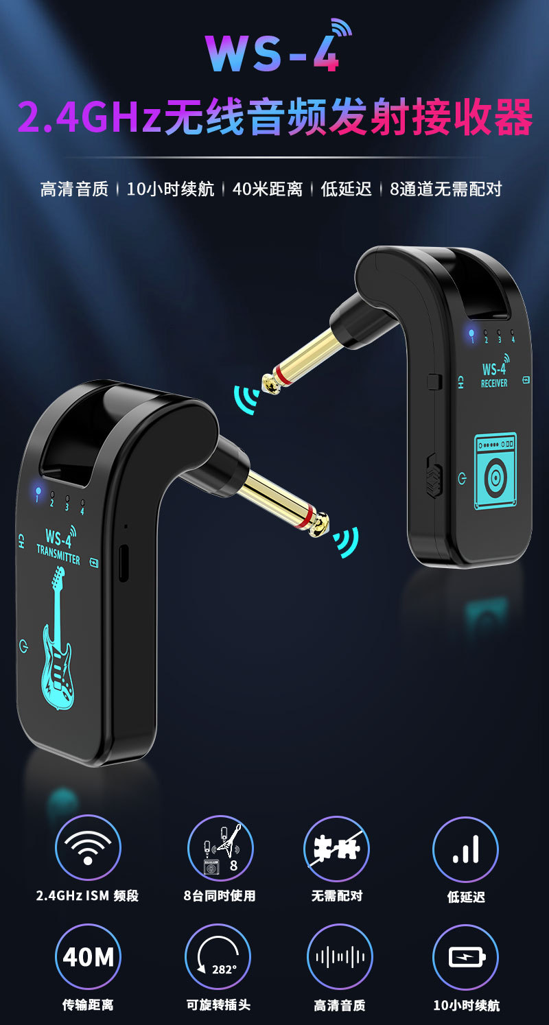 Transfronterizo en stock guitarra eléctrica receptor de transmisión inalámbrica instrumento musical conexión altavoz de sonido tubo de soplado transceptor inalámbrico