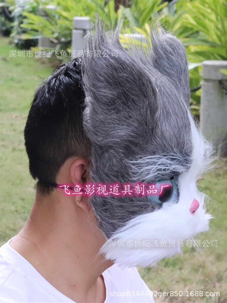 Conejo máscara de Halloween conejo disfraz de fiesta de fantasmas props de fotografía pelusa máscara de conejo blanco y negro