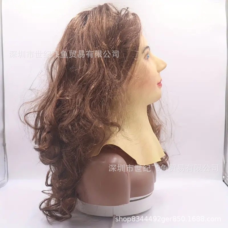 Máscaras de belleza pelucas de cabello largo Halloween simulación de cara joven máscara de látex fábrica de rendimiento en stock