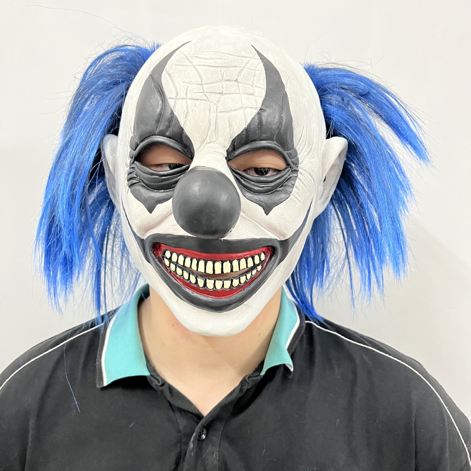 Máscara de payaso de terror transfronterizo cabello azul látex accesorios de decoración Halloween