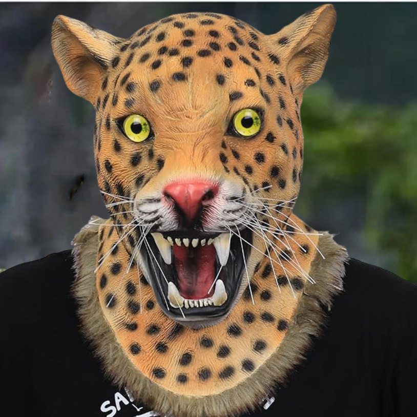 Máscara de leopardo animal realista tocado disfraz de fiesta de carnaval de Halloween divertido juego máscara de jaguar