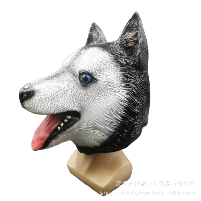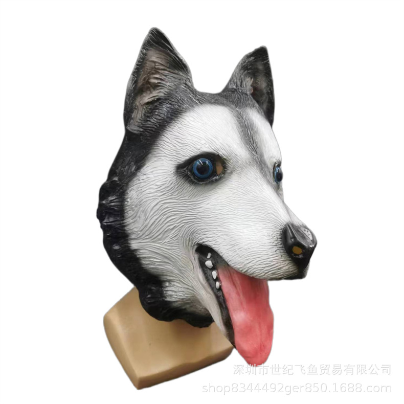 Perro cabeza máscara Halloween bola animal látex sombrero lindo divertido arena talla Husky Lobo cabeza accesorios de juego