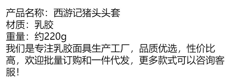 Cerdo ocho anillo máscara viaje al oeste rendimiento traje accesorios látex adulto cara completa cabeza cubierta TikTok mismo estilo cabeza de cerdo cubierta de la cabeza