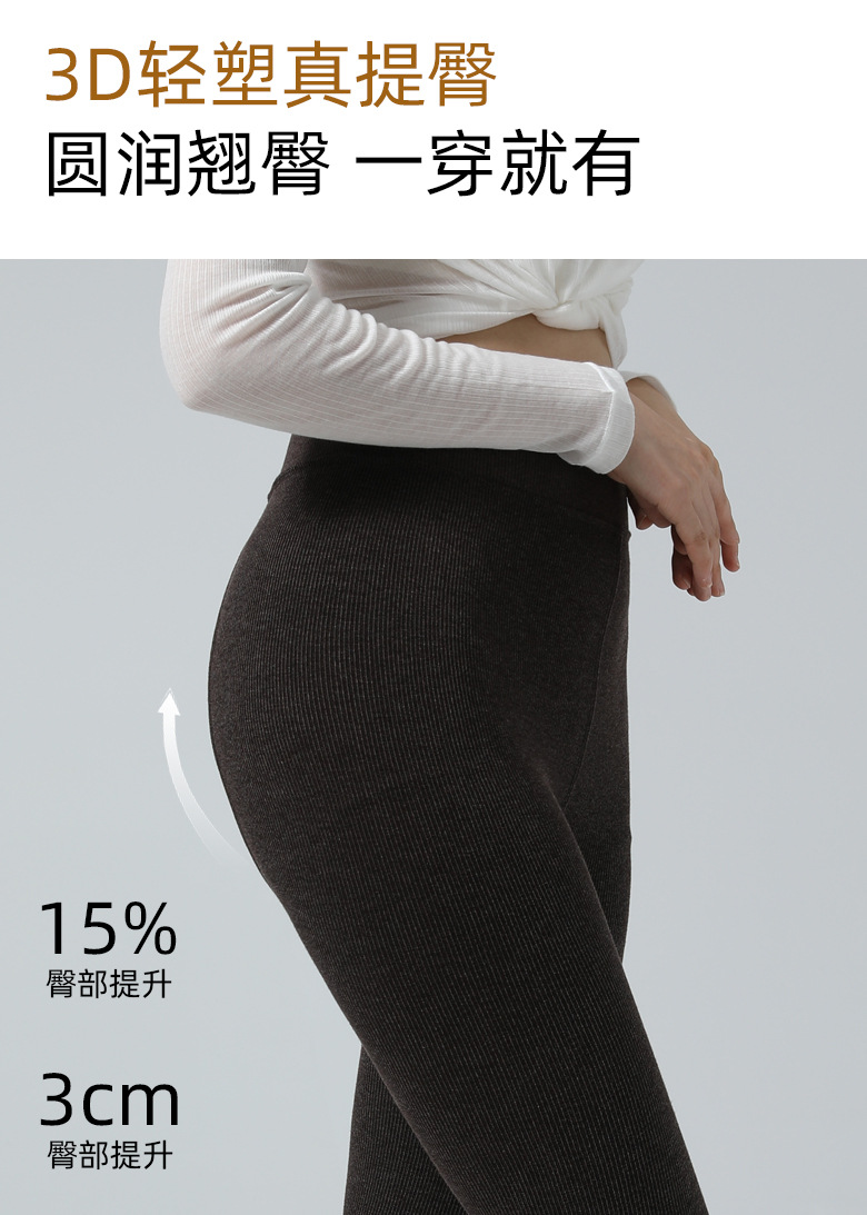 Leggings de micropresión de costillas finas, calzoncillos de cintura alta, pelusa interior, leggings cómodos para la piel, otoño y invierno