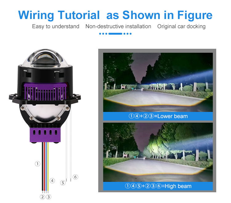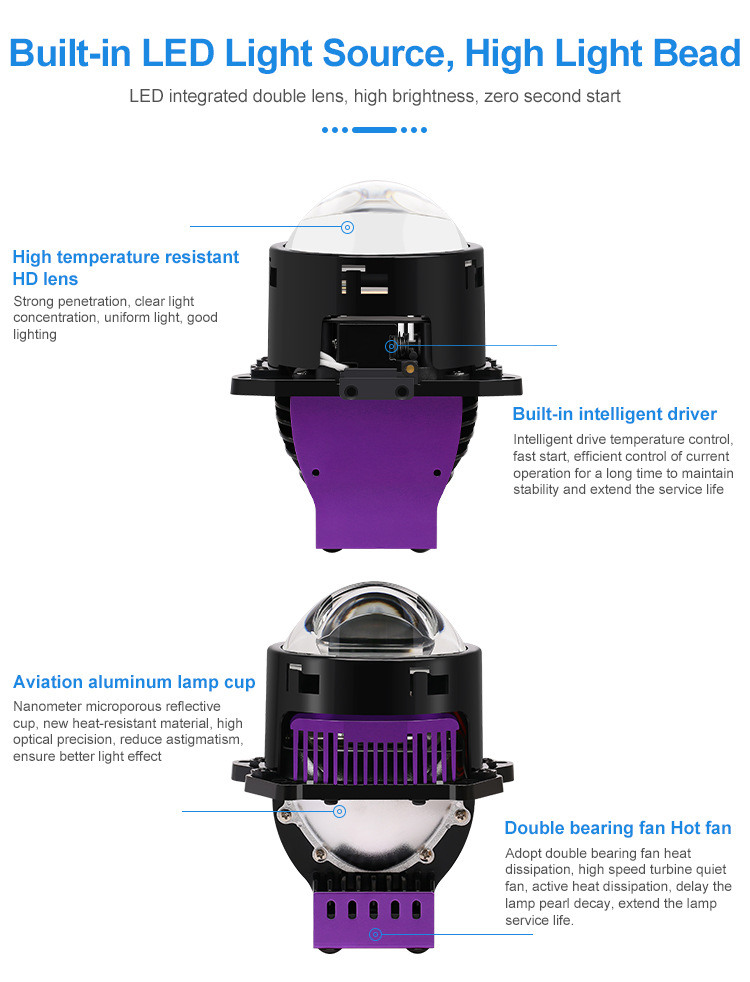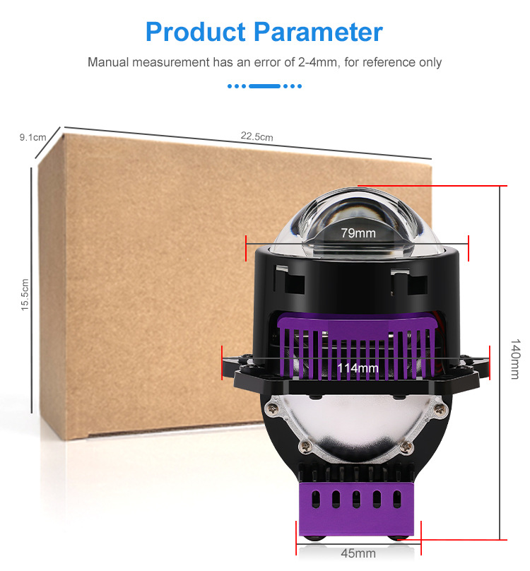 Matriz de producción de fábrica, lámpara de coche de lente grande, lámpara corta de coche láser grande de tres disparos directos de 3.0 pulgadas, faros brillantes