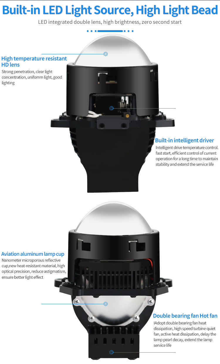 Nueva lente de luz de coche de disparo directo único de copa doble transfronteriza, lente de disparo directo de alta potencia GTR, modificación de faros de motocicleta