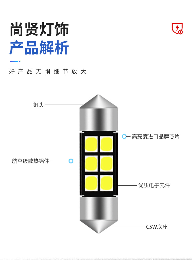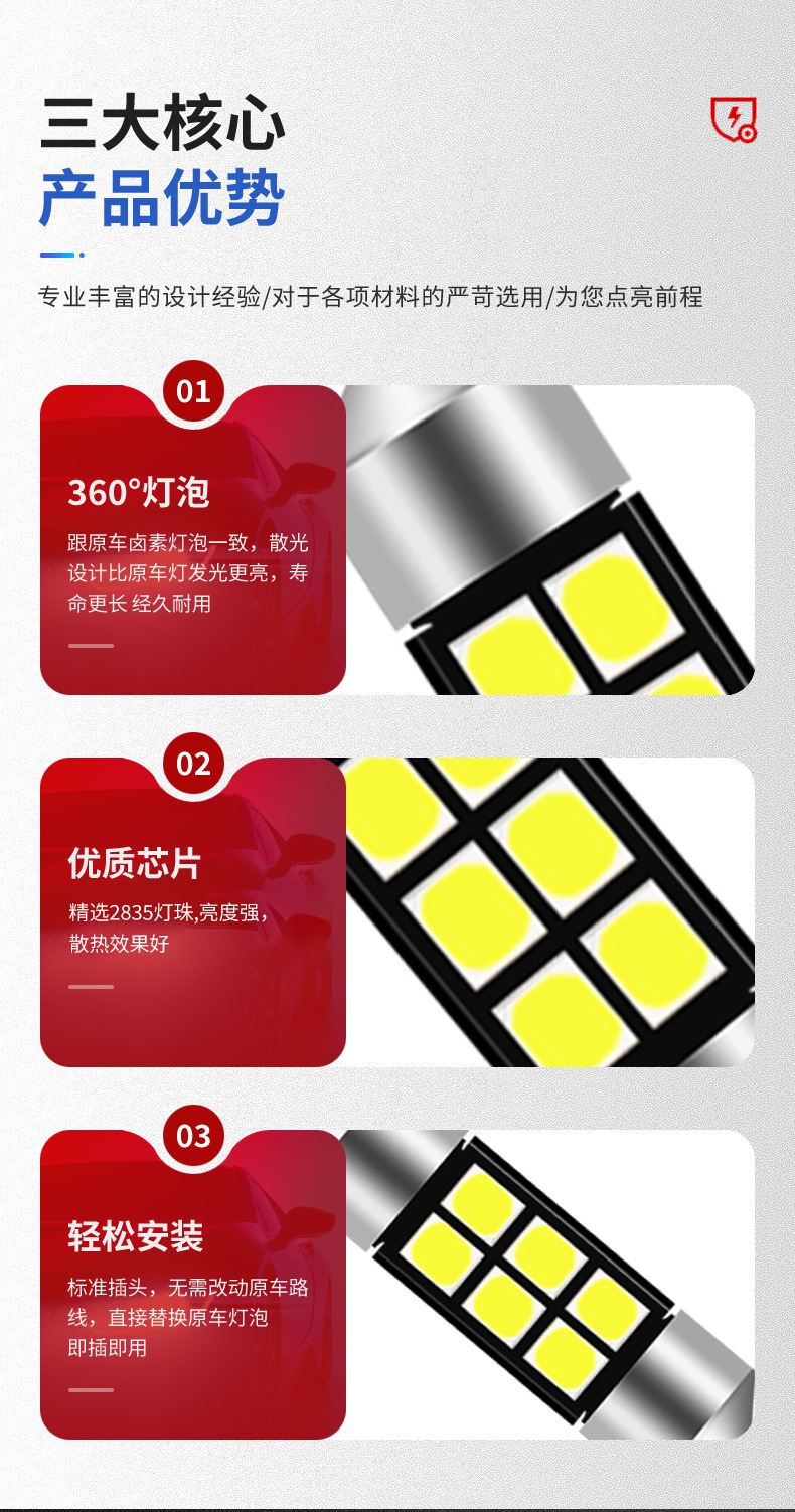 Luz de techo transfronteriza 2835 para coche, luz LED de doble punta para coche, luz para matrícula de carro de 31/36/39/41MM
