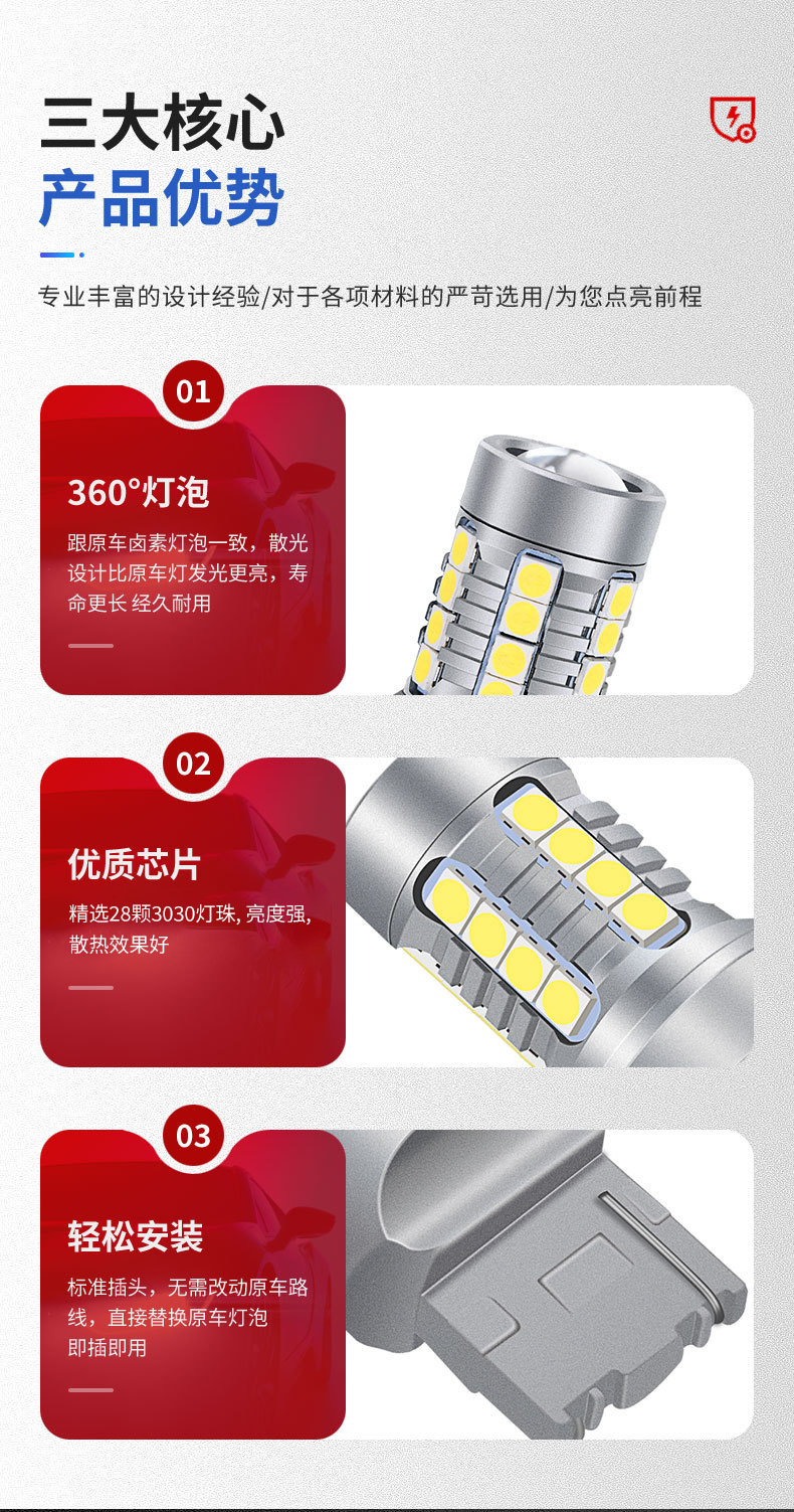 t10led ancho de automóvil luces de perfil luces de dirección 28SMD-7443LED luz de brillo luces de freno