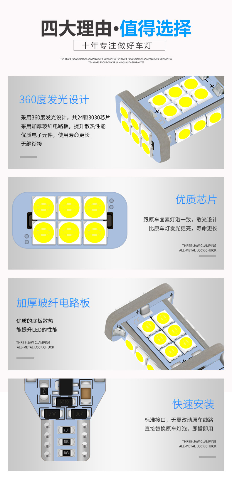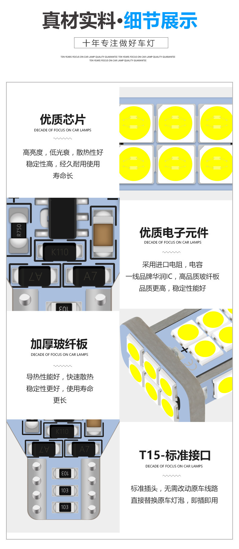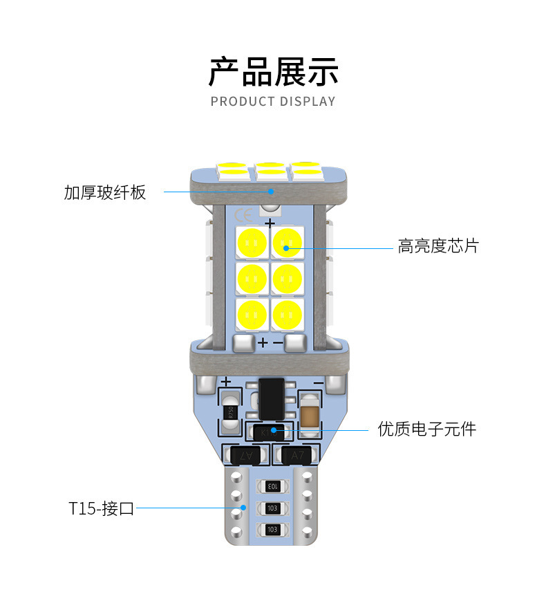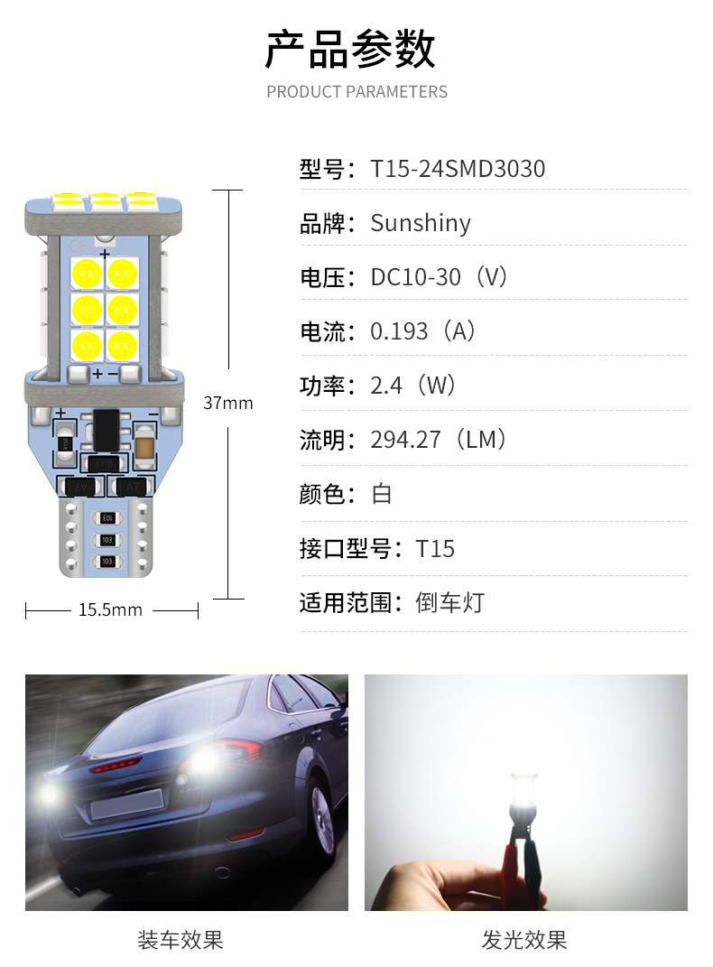 Transfronteriza nueva luz LED del coche T15 Luz de marcha atrás 3030 + 24SMD + w16w + decodificación de luz de corriente constante de presión amplia