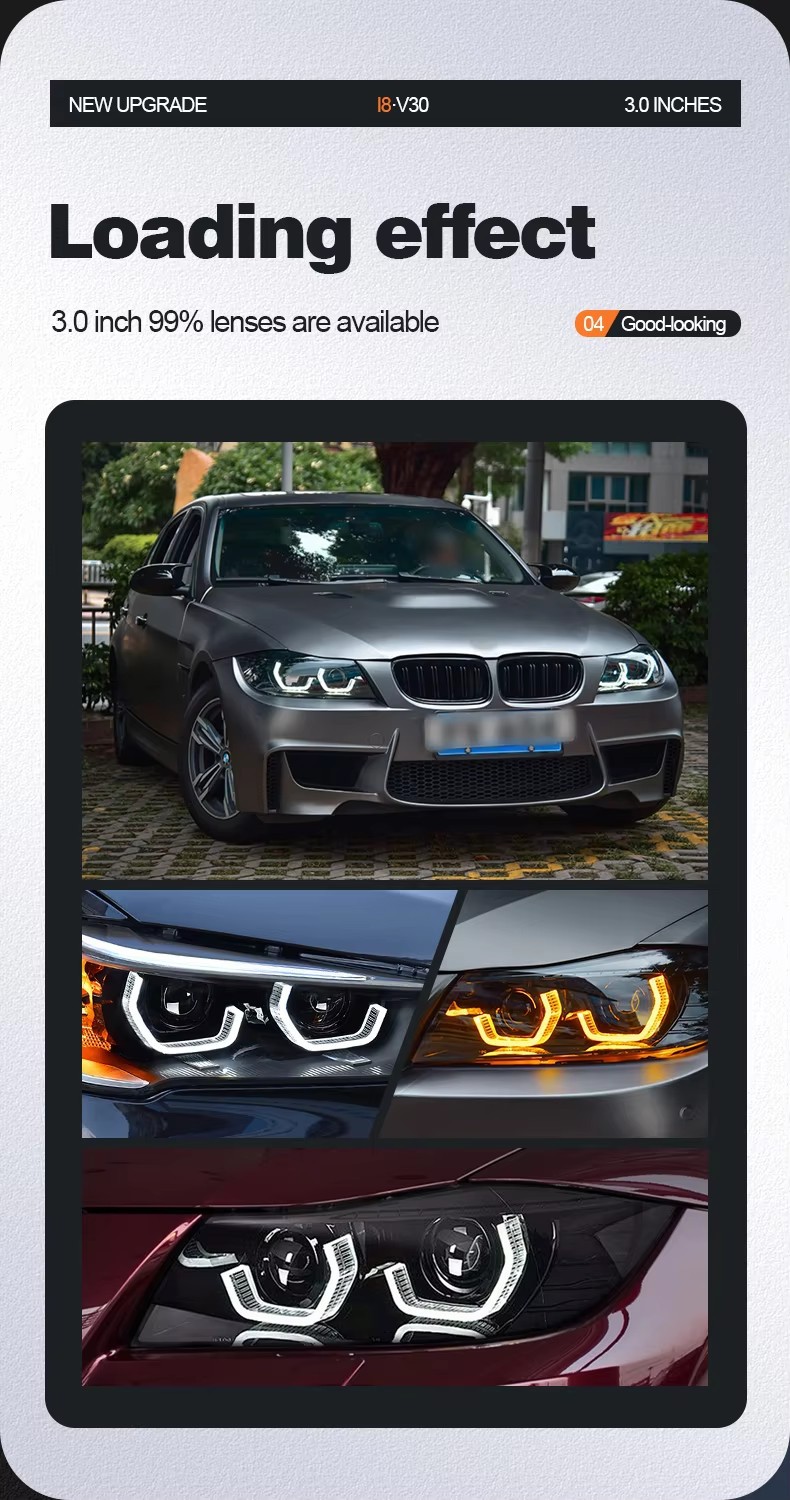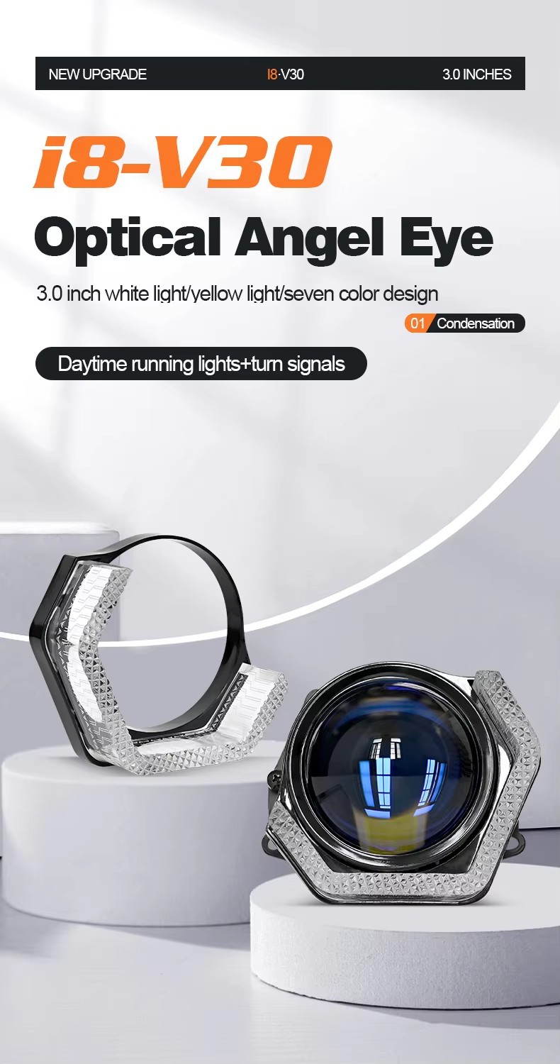 I8 una cubierta de lente de faro de automóvil 3.0 ángel ojos blanco + amarillo brillante sombrilla monocromática semicircular