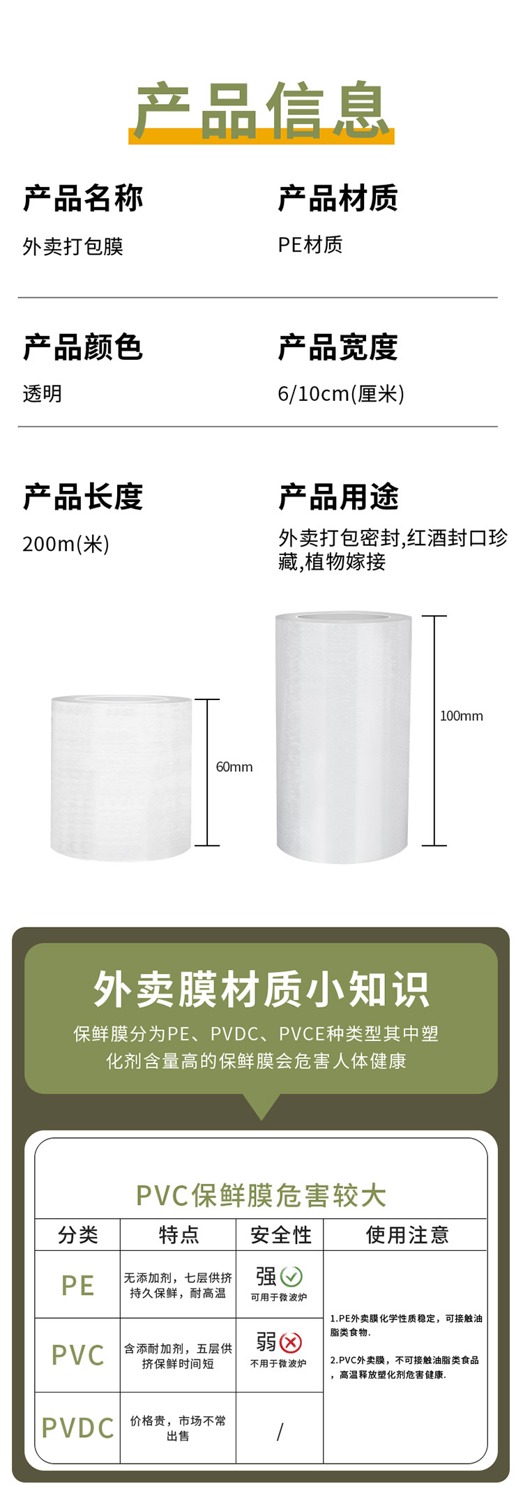 Pequeño rollo de PE película de 6cm para llevar película de embalaje caja de sellado película de embalaje película de injerto de jardín película de estiramiento