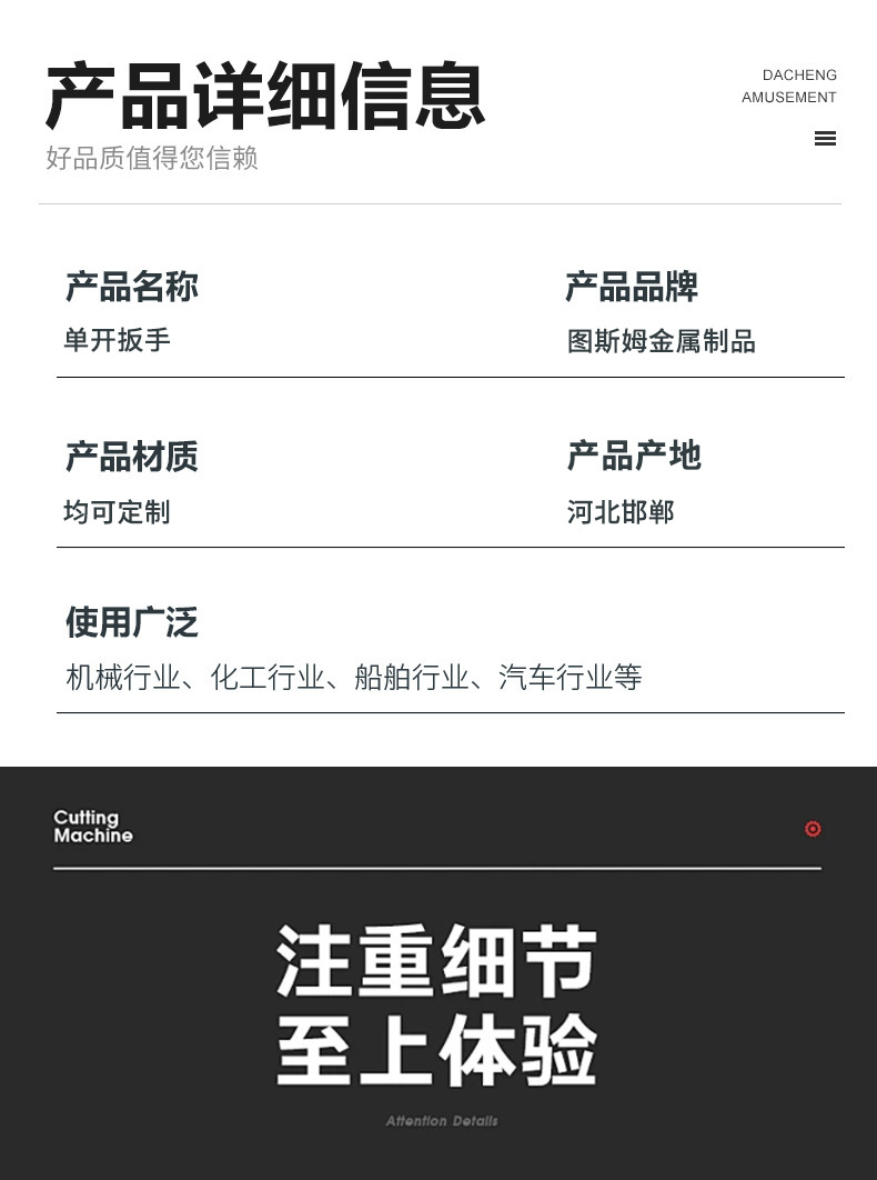 Galvanizado estampado simple llave de apertura desechable muebles de apoyo herramientas de llave pequeña de cabeza única especificaciones completas