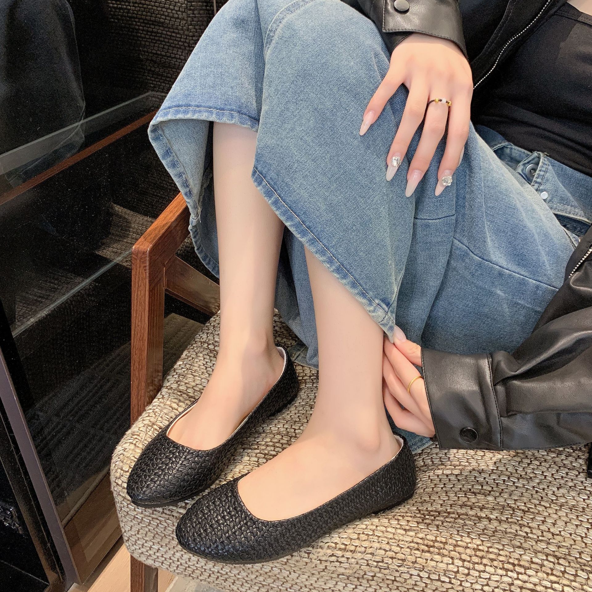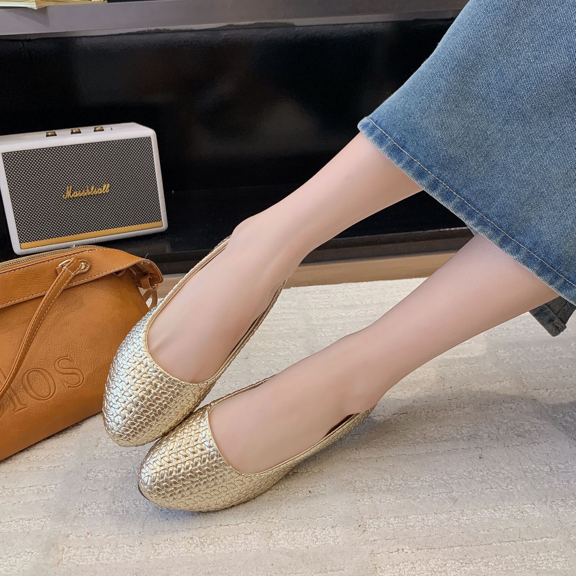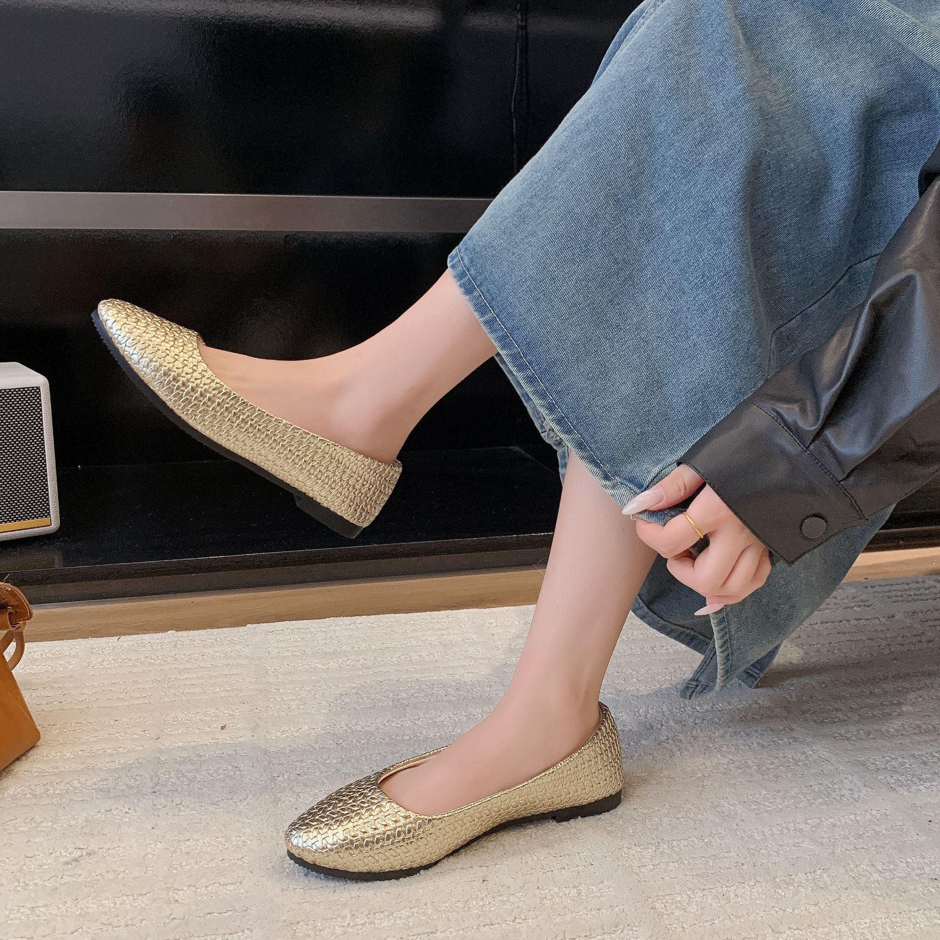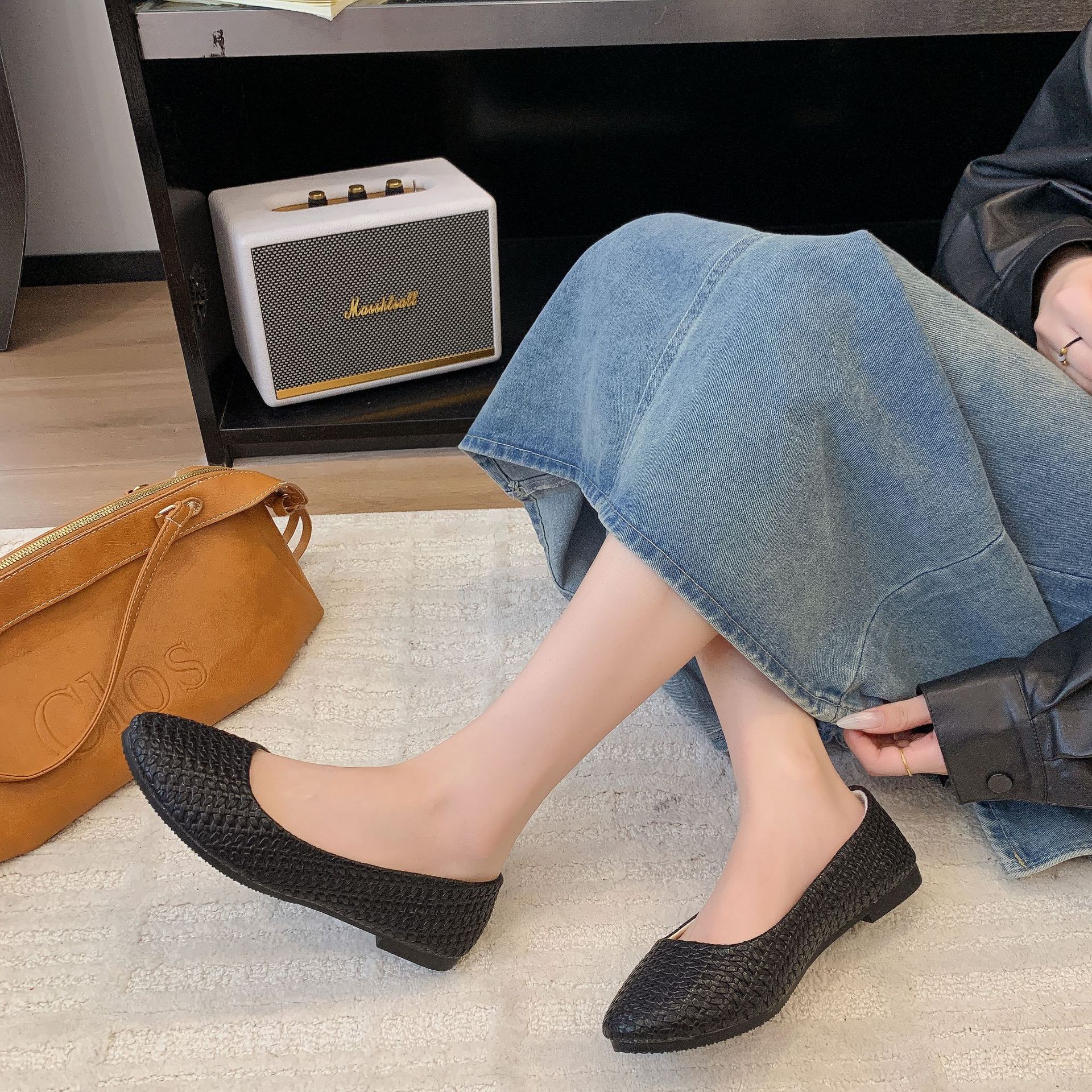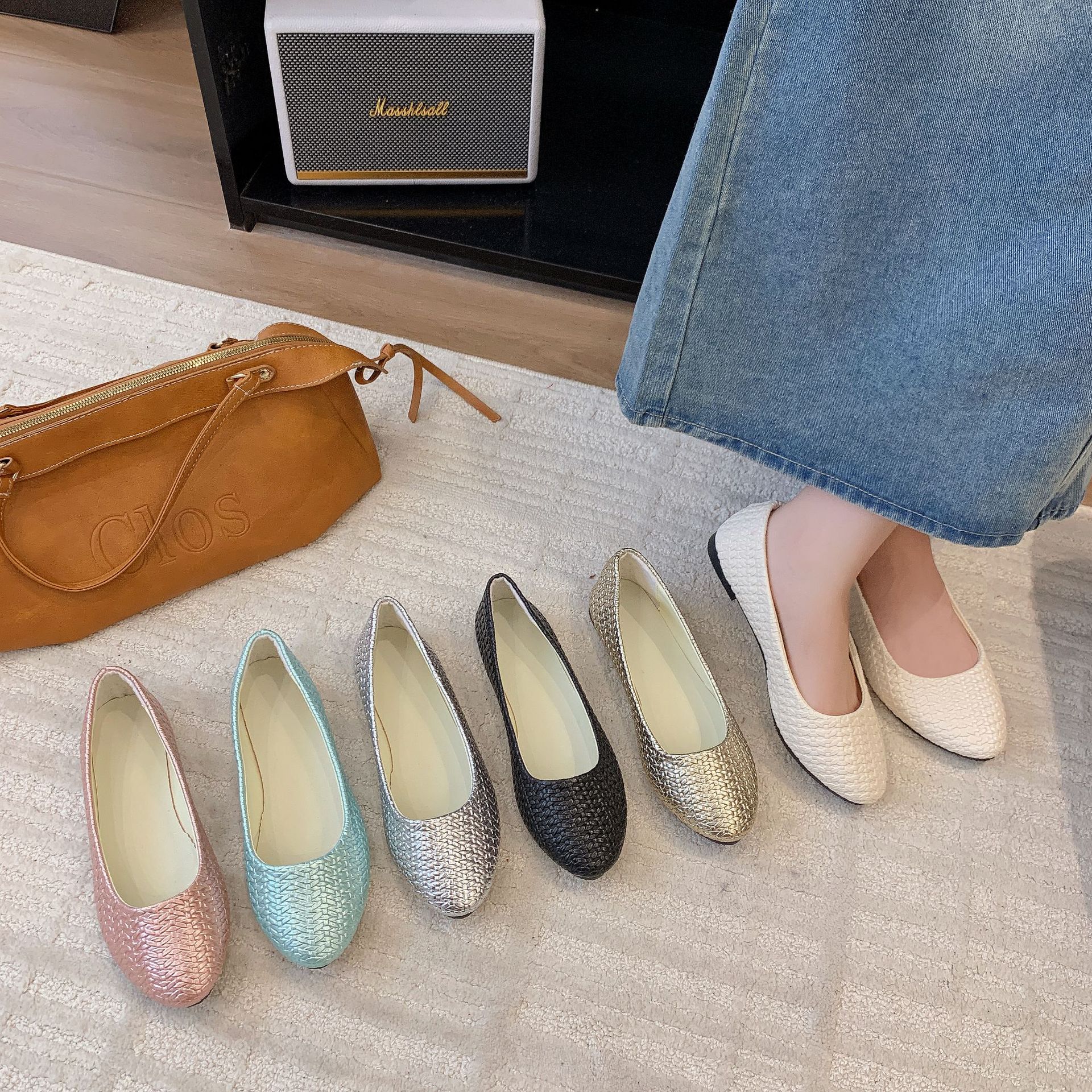 Gran tamaño de diseño trenzado sentido de otoño 2025 nuevo estilo poco profundo cabeza punta suela suave zapatos de abuela retro zapatos de sola plana para mujeres