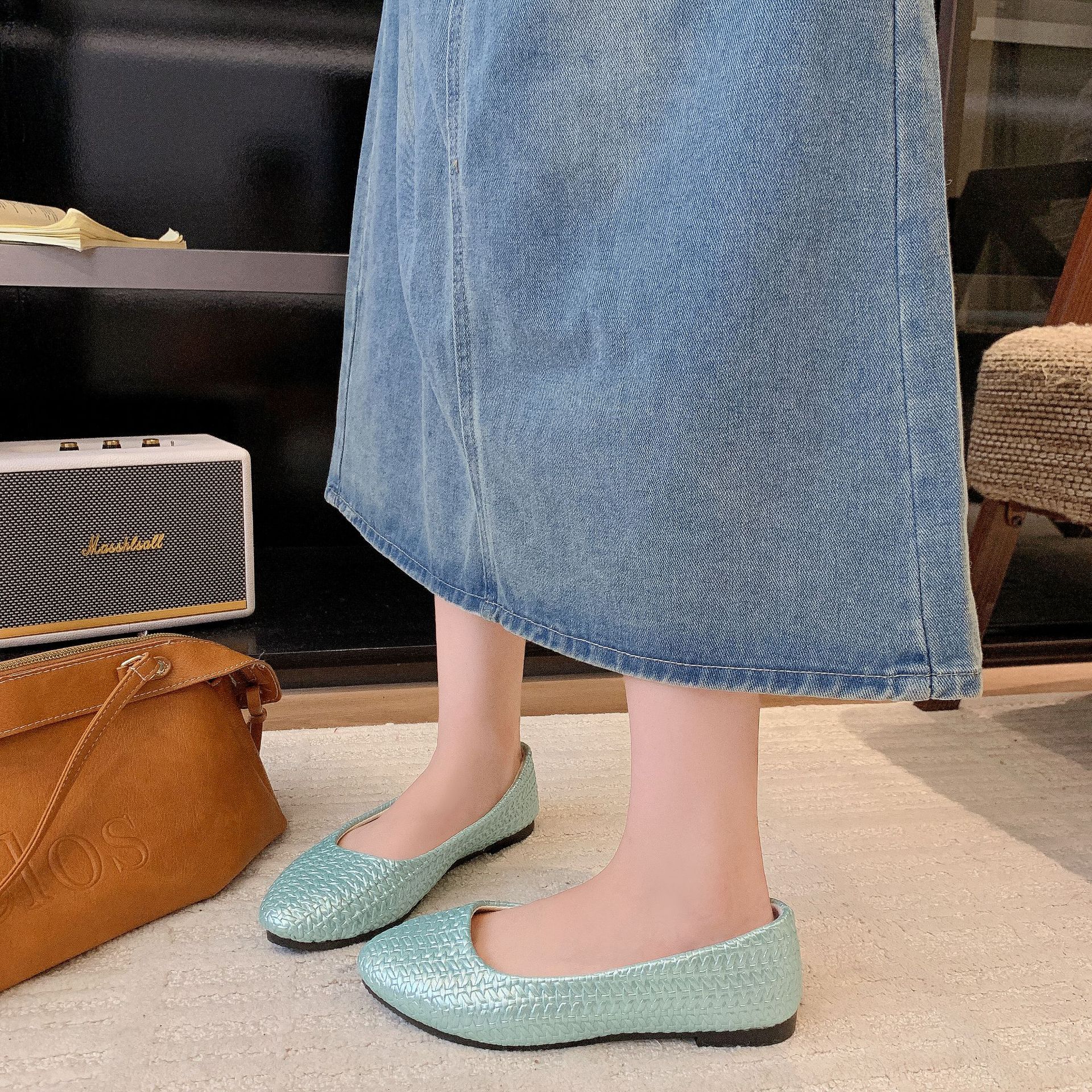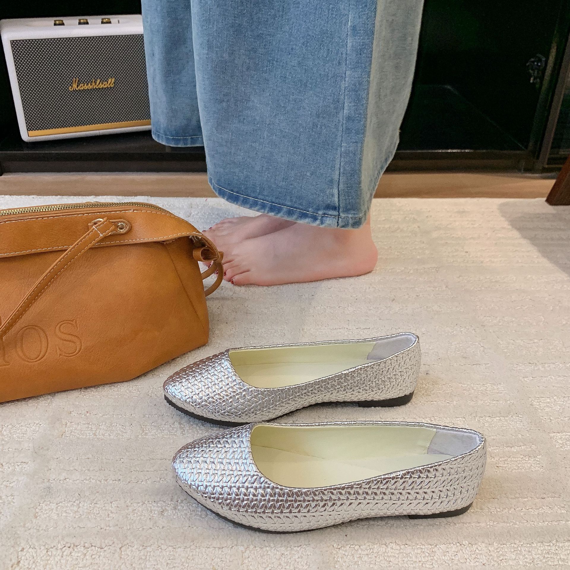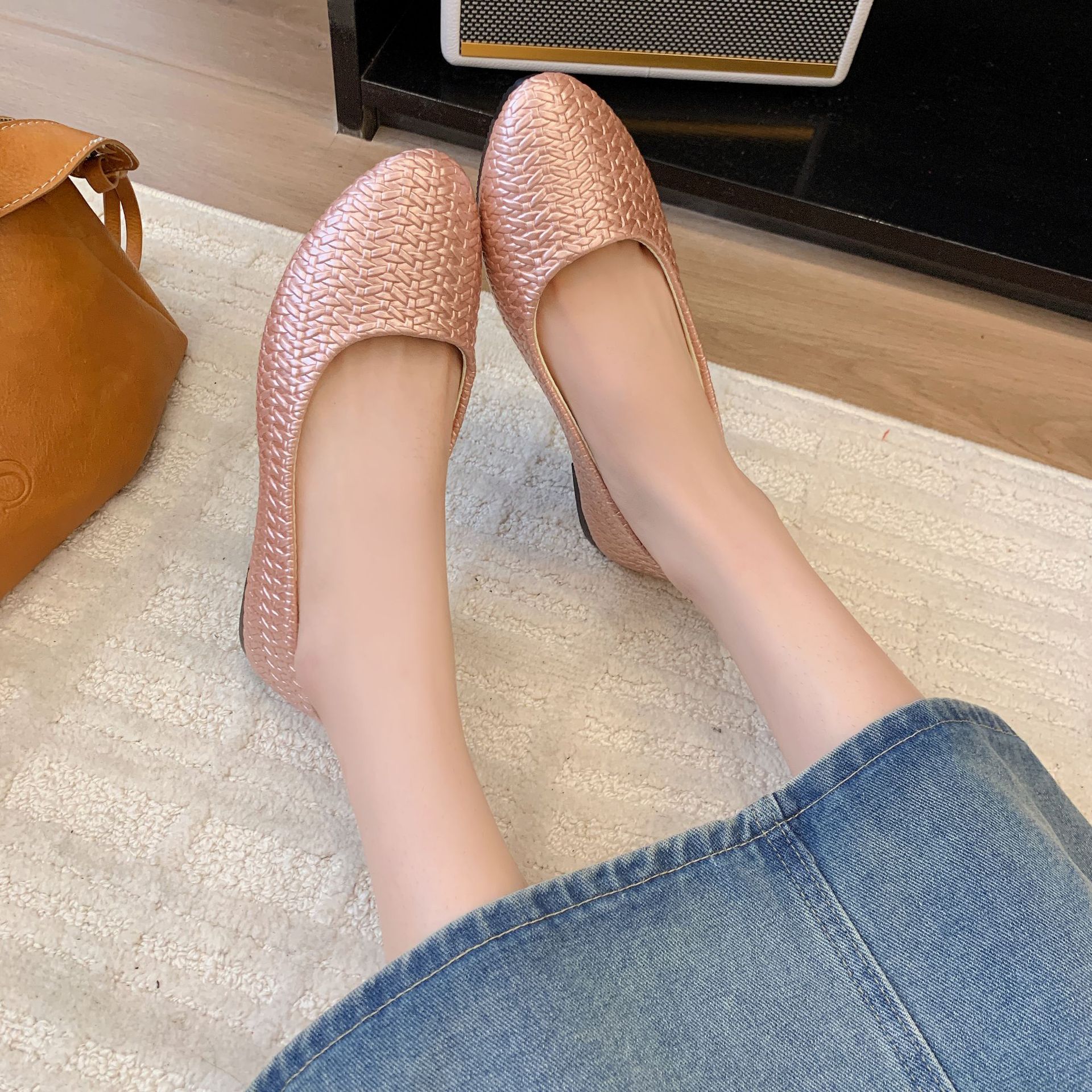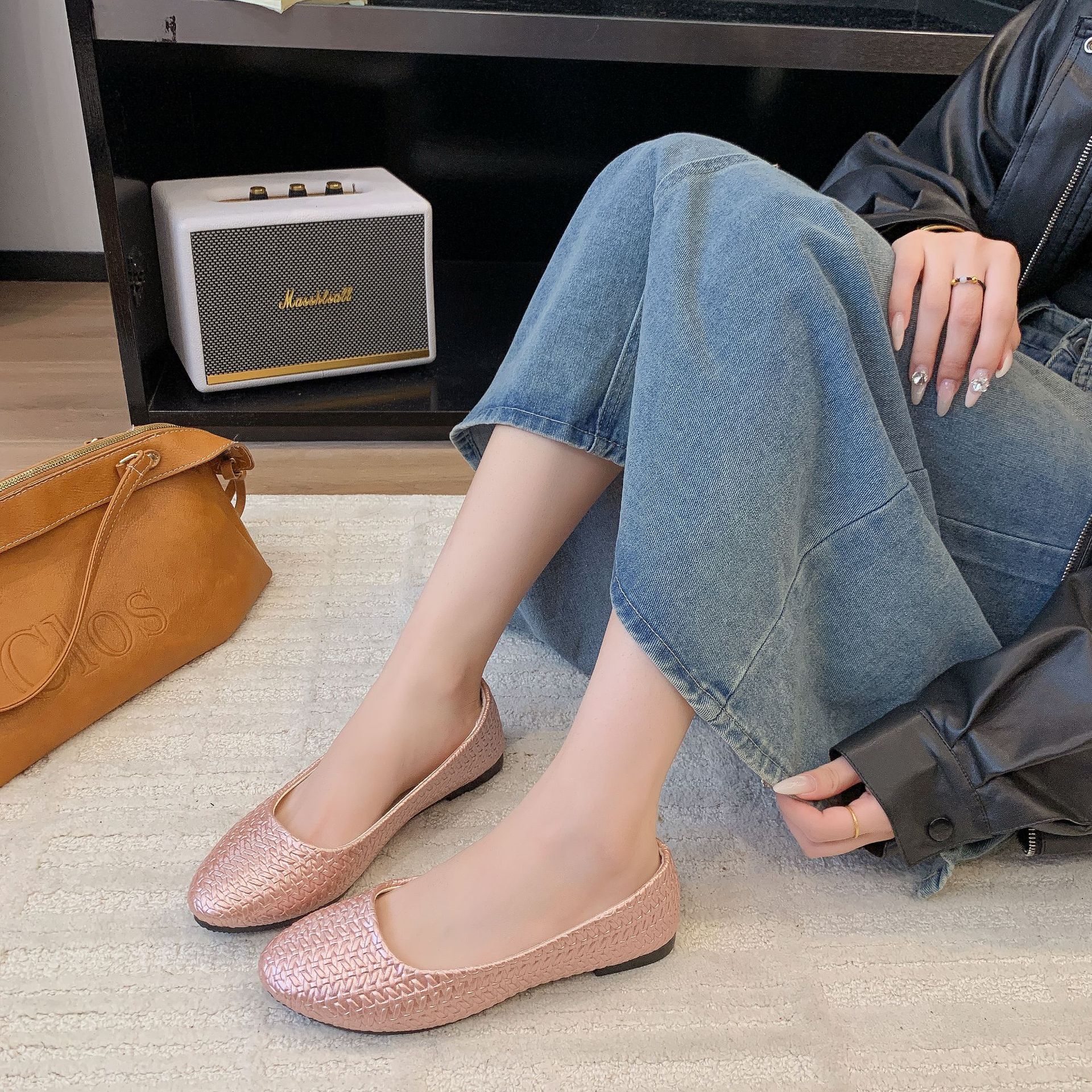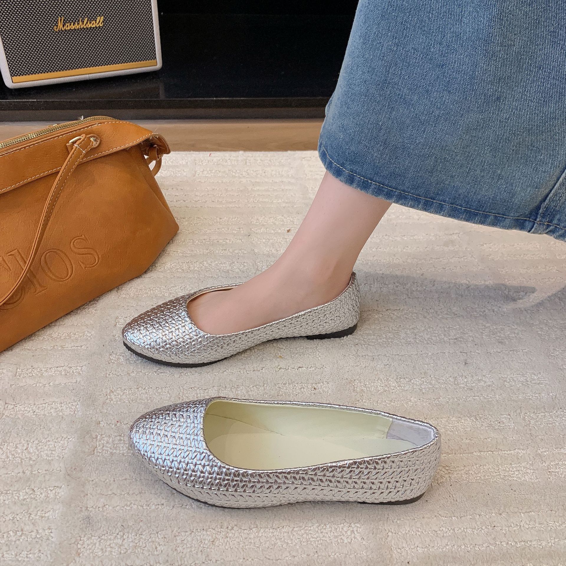 Gran tamaño de diseño trenzado sentido de otoño 2025 nuevo estilo poco profundo cabeza punta suela suave zapatos de abuela retro zapatos de sola plana para mujeres