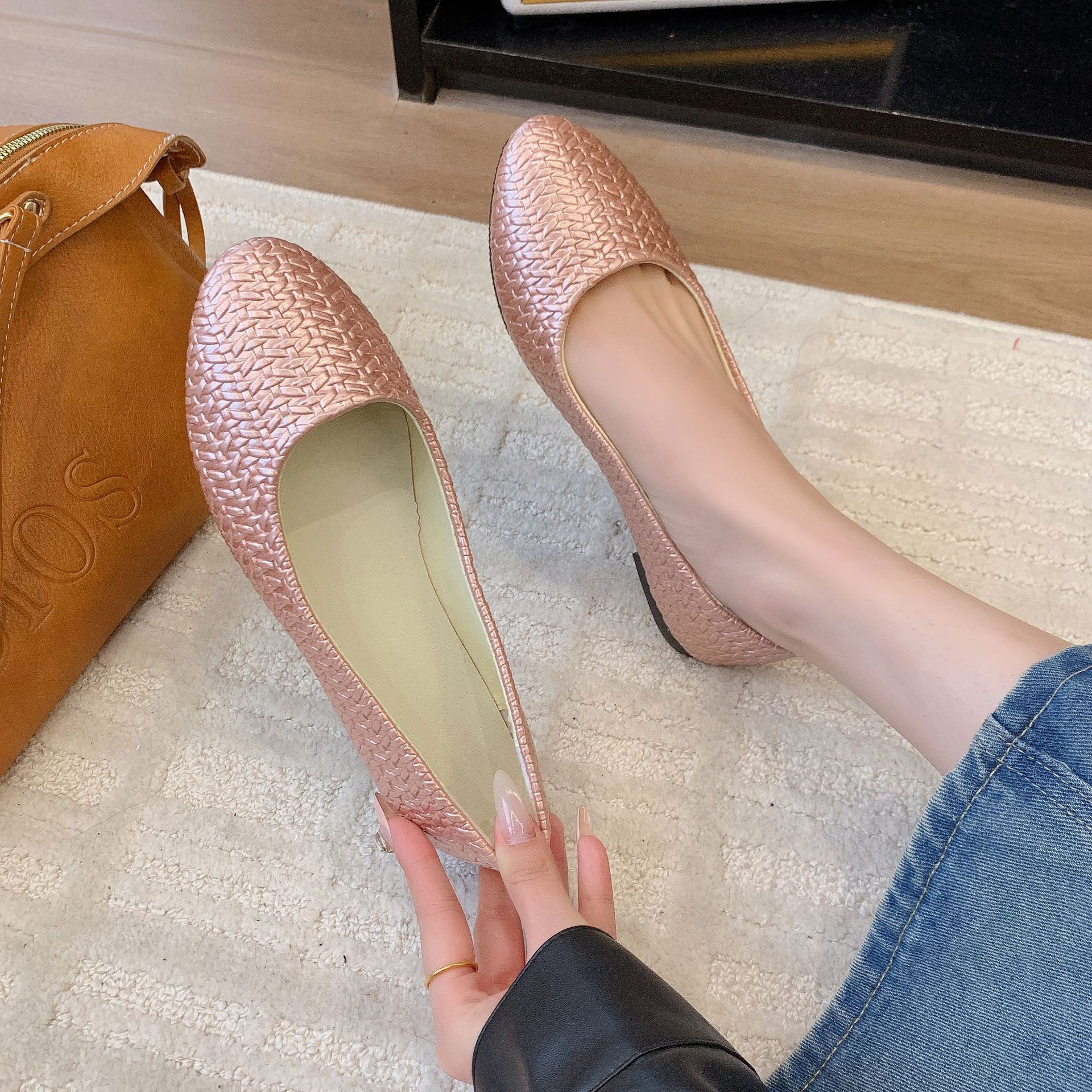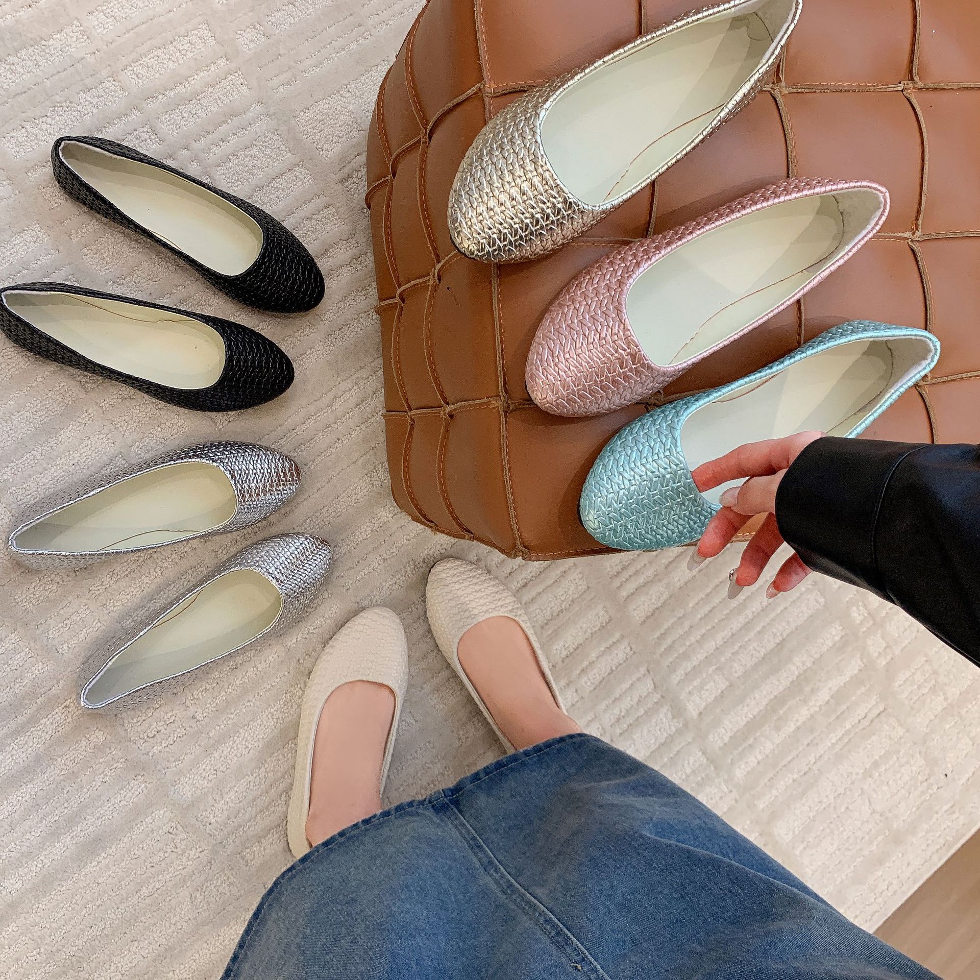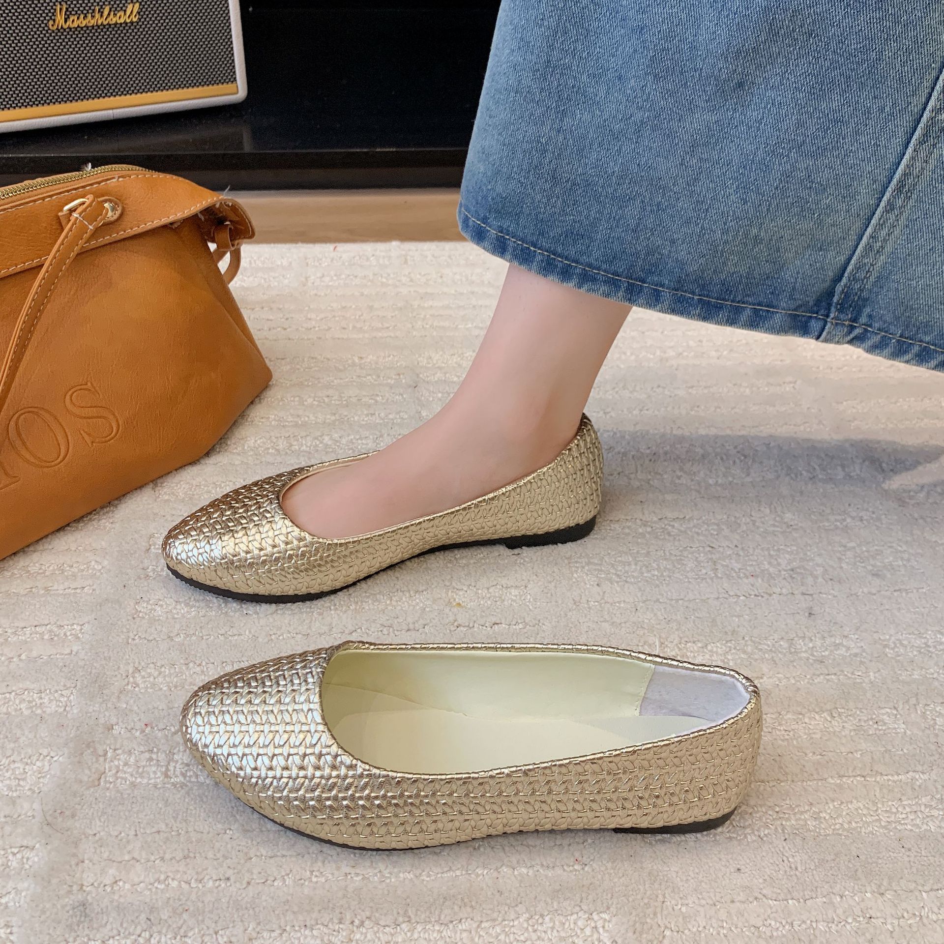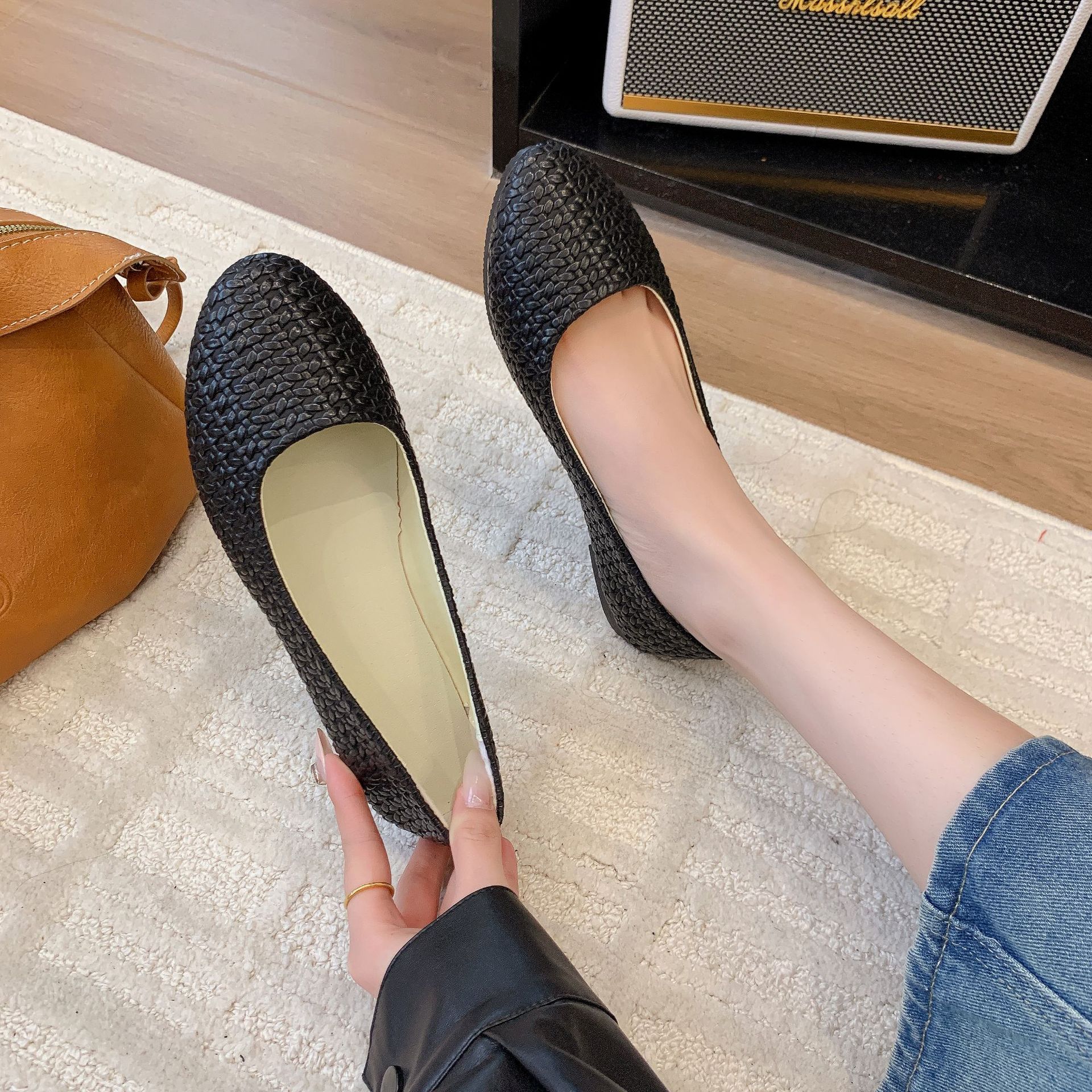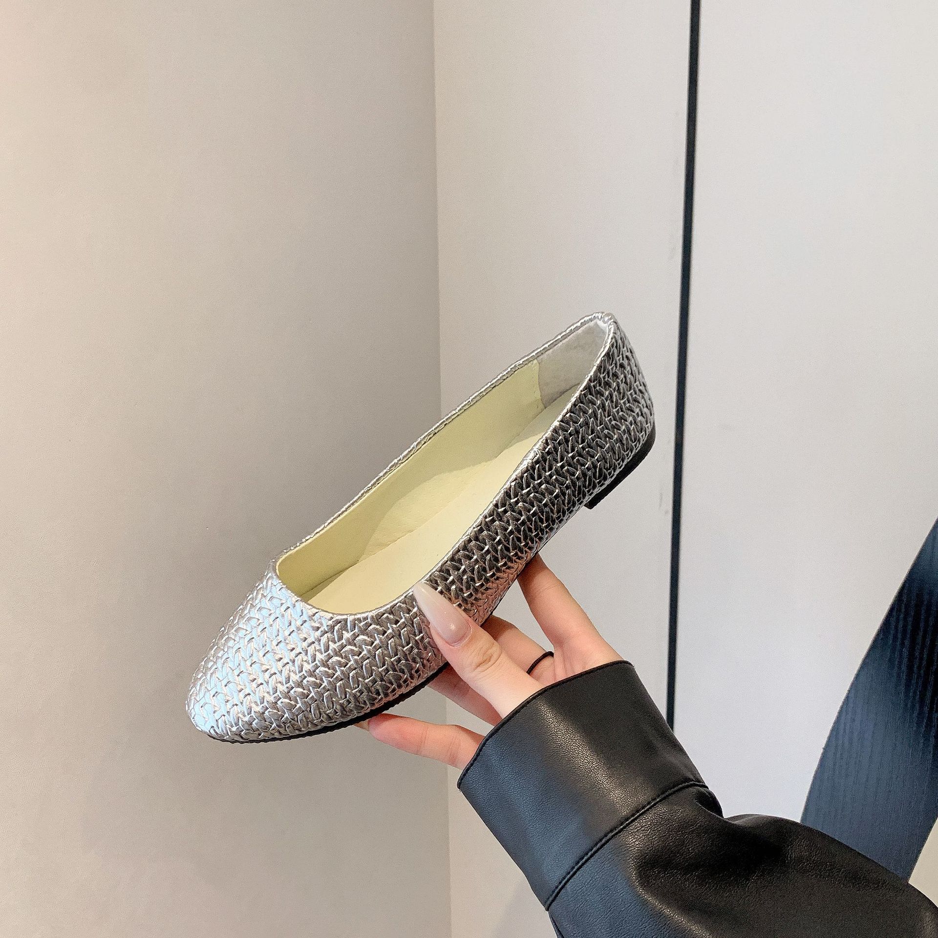 Gran tamaño de diseño trenzado sentido de otoño 2025 nuevo estilo poco profundo cabeza punta suela suave zapatos de abuela retro zapatos de sola plana para mujeres