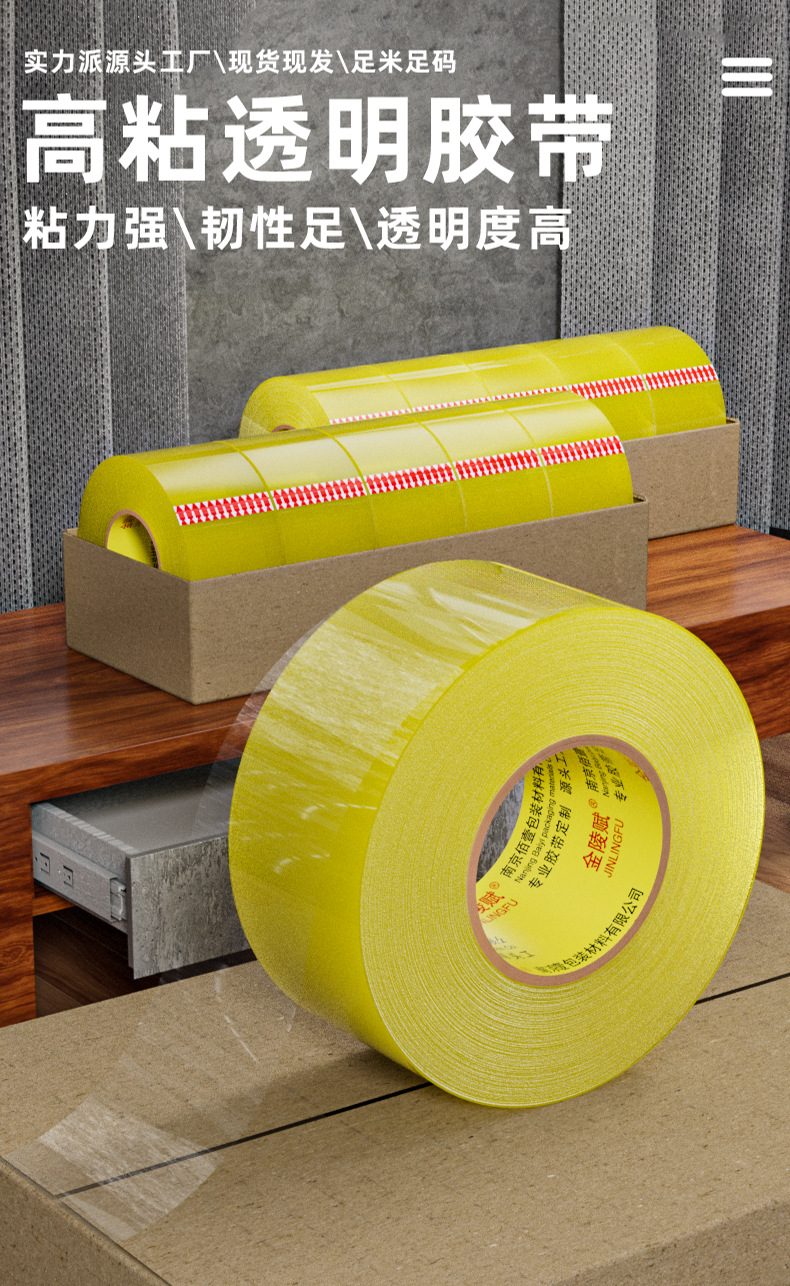 Mayorista caja de cinta adhesiva transparente alta tenacidad alta adhesiva empaque expreso papel de sellado amarillo caja de cinta adhesiva ancha tela de sellado de gran volumen