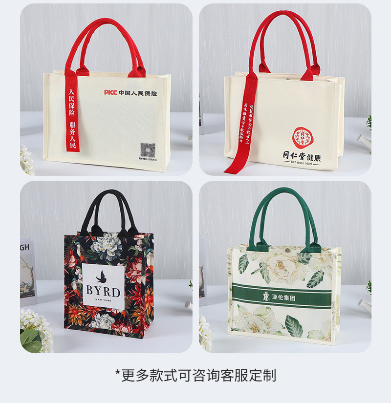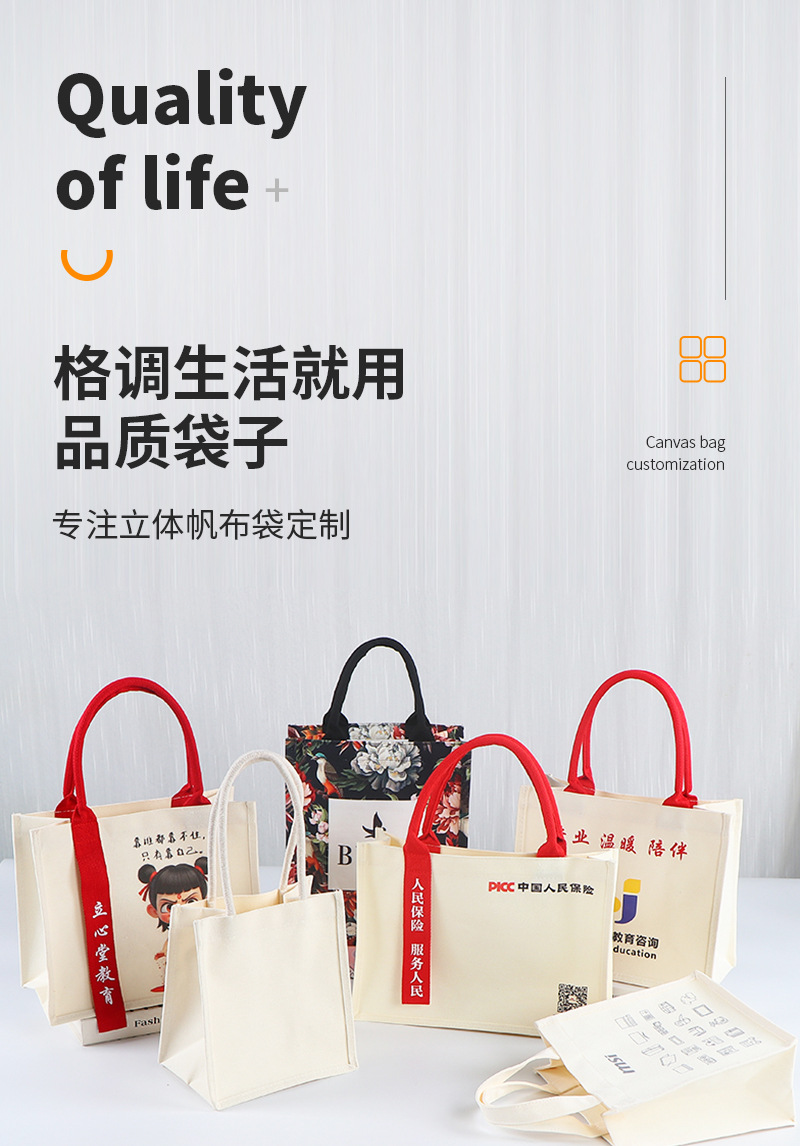 Bolso de tote de lona portátil tridimensional, logotipo impreso personalizado, publicidad, compras de gran capacidad, bolsa de regalo de lona cultural y creativa