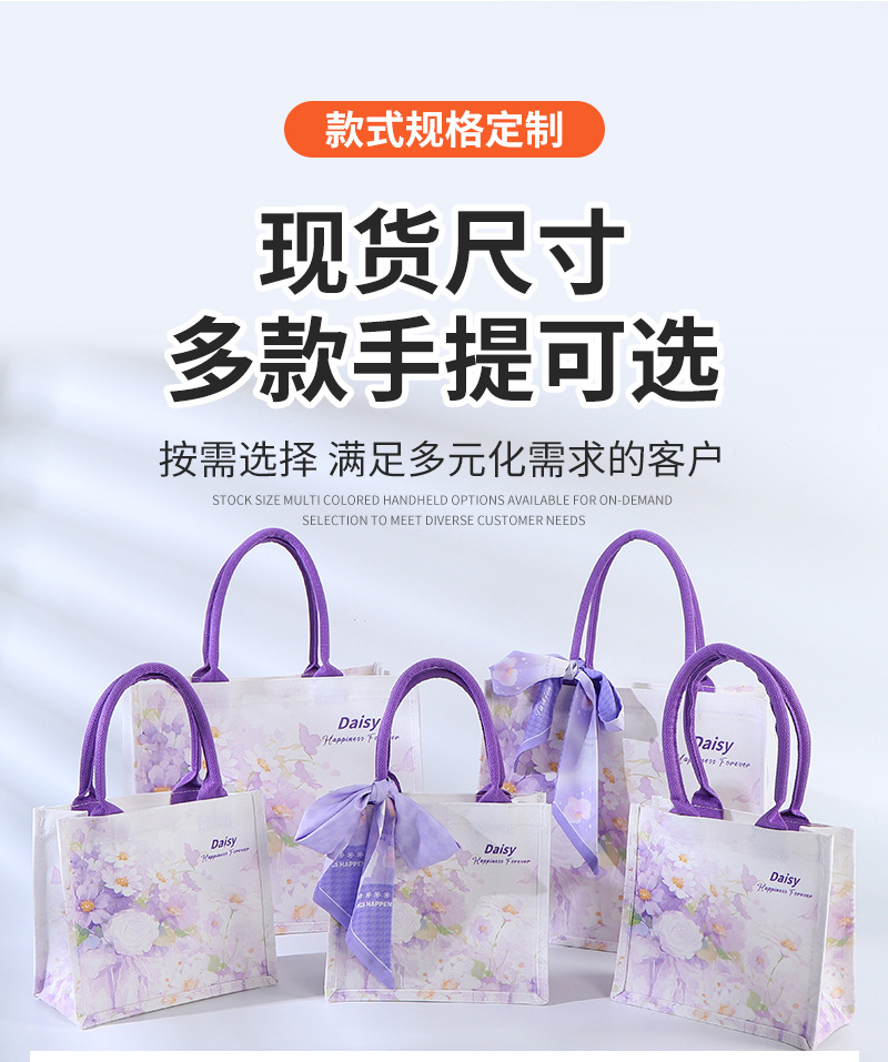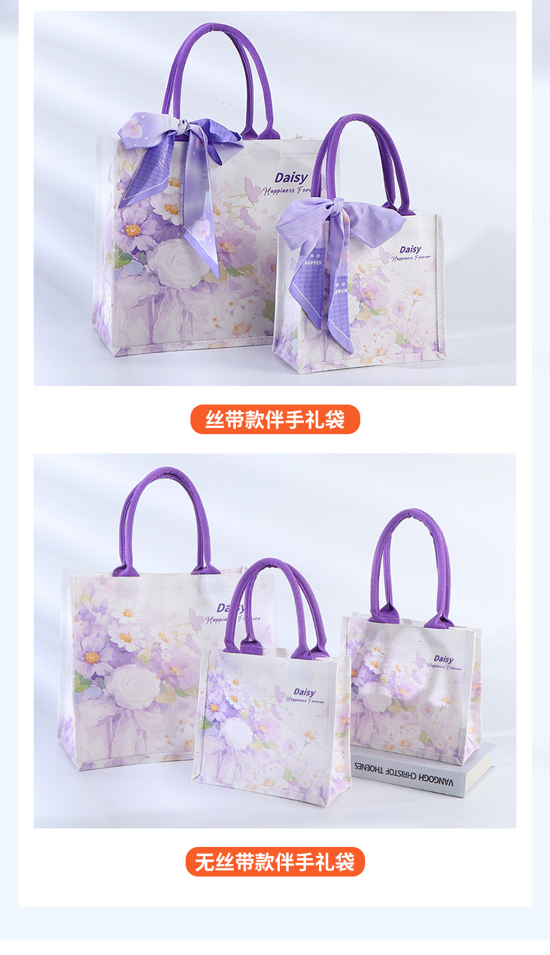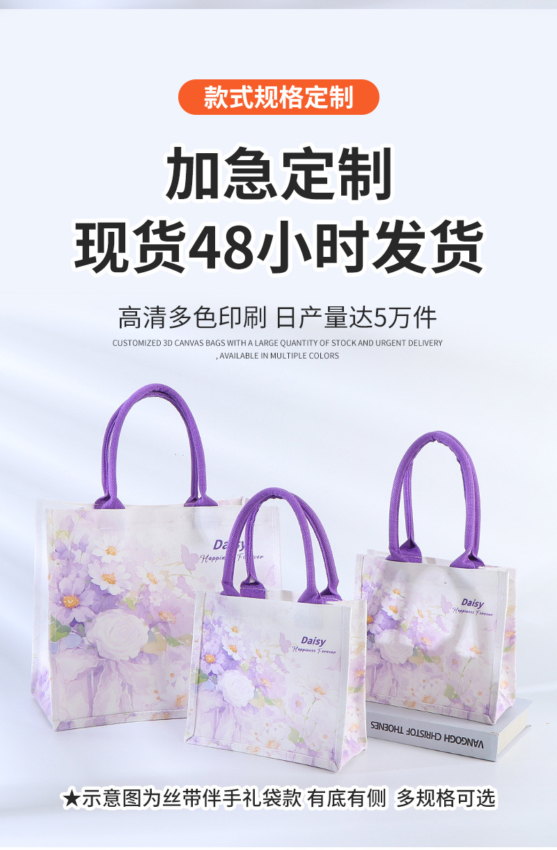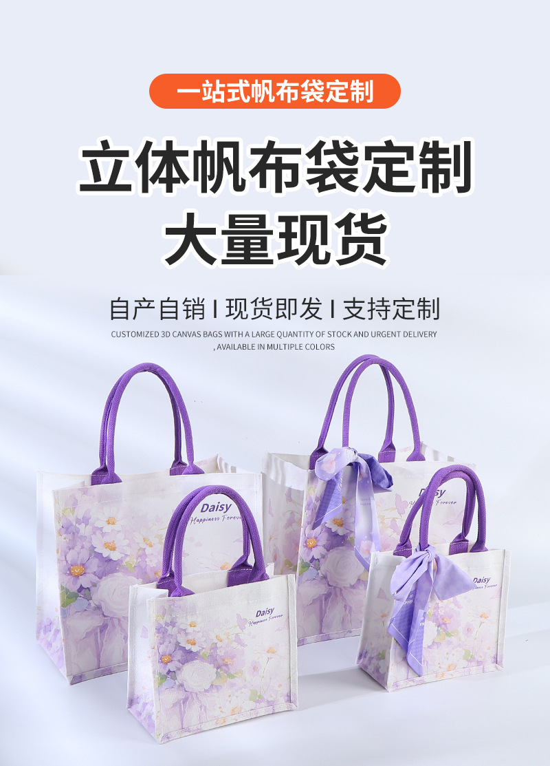Bolsa de lona de estaminos, bolsas de lona de seda púrpura, bolsas de lona de mano, bolsas de lona de mano tridimensionales de compras