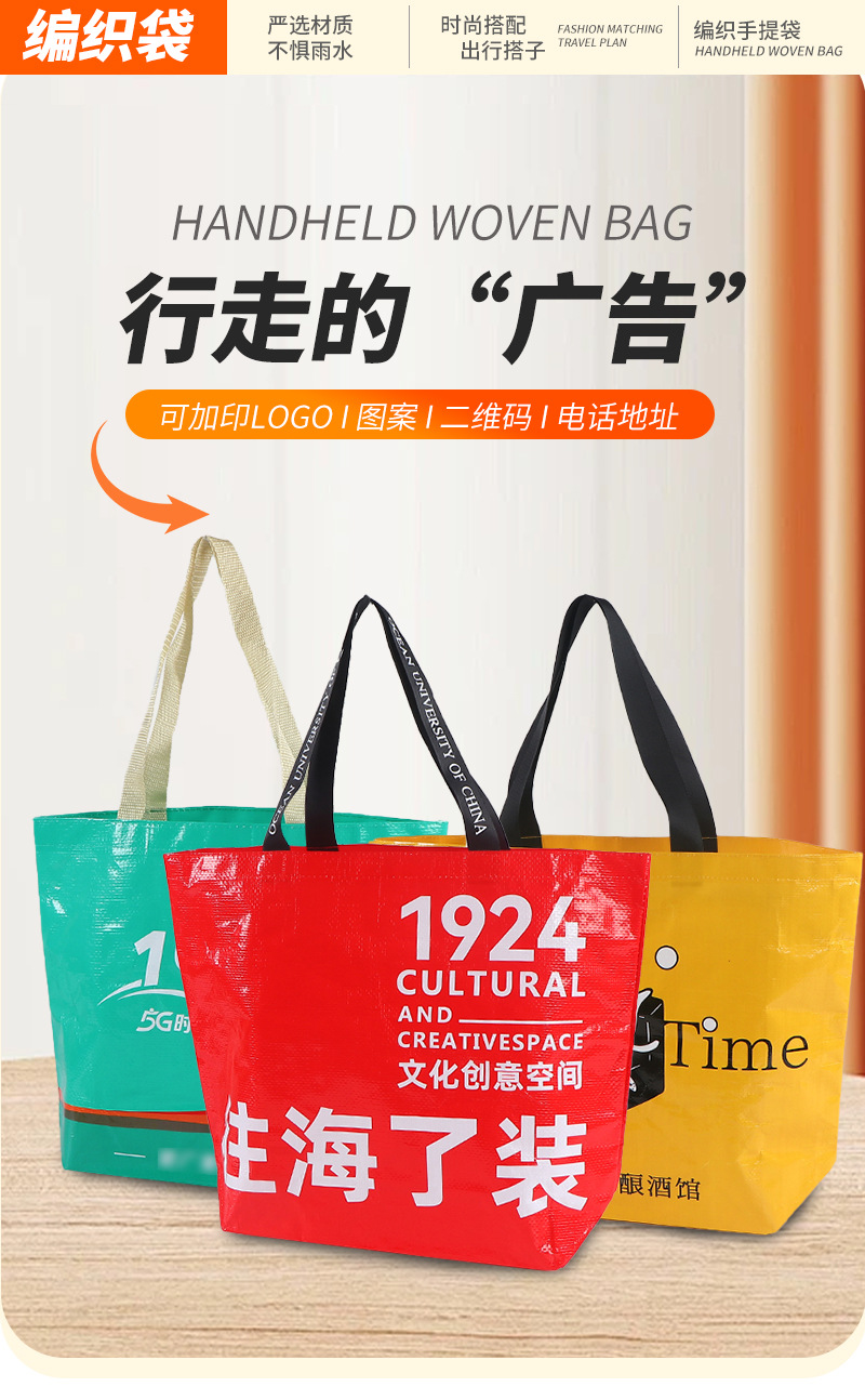 Bolsa tejida portátil, película personalizada, regalo impermeable, compras, bolsa de piel de serpiente en movimiento, bolsa publicitaria de exhibición, engrosamiento