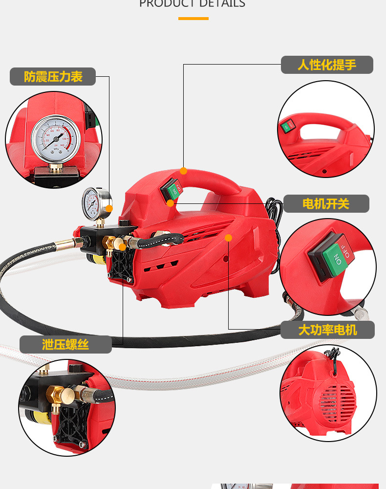 Bomba de prueba de presión eléctrica DC-360B portátil cilindro doble flujo grande tubería de calefacción por suelo radiante tubería de agua contra incendios lavadora a presión