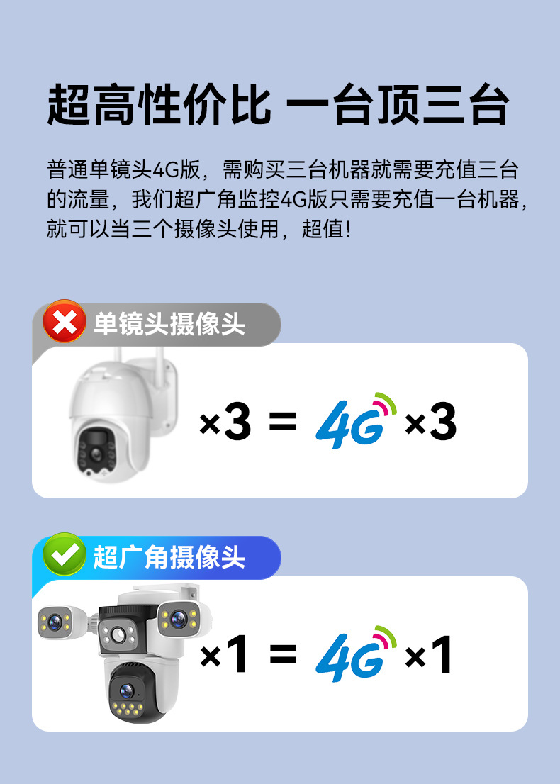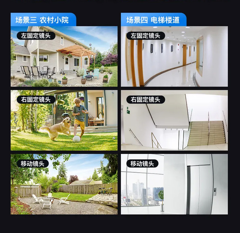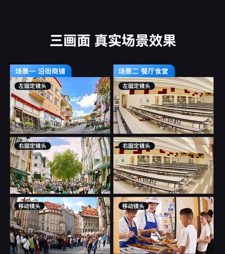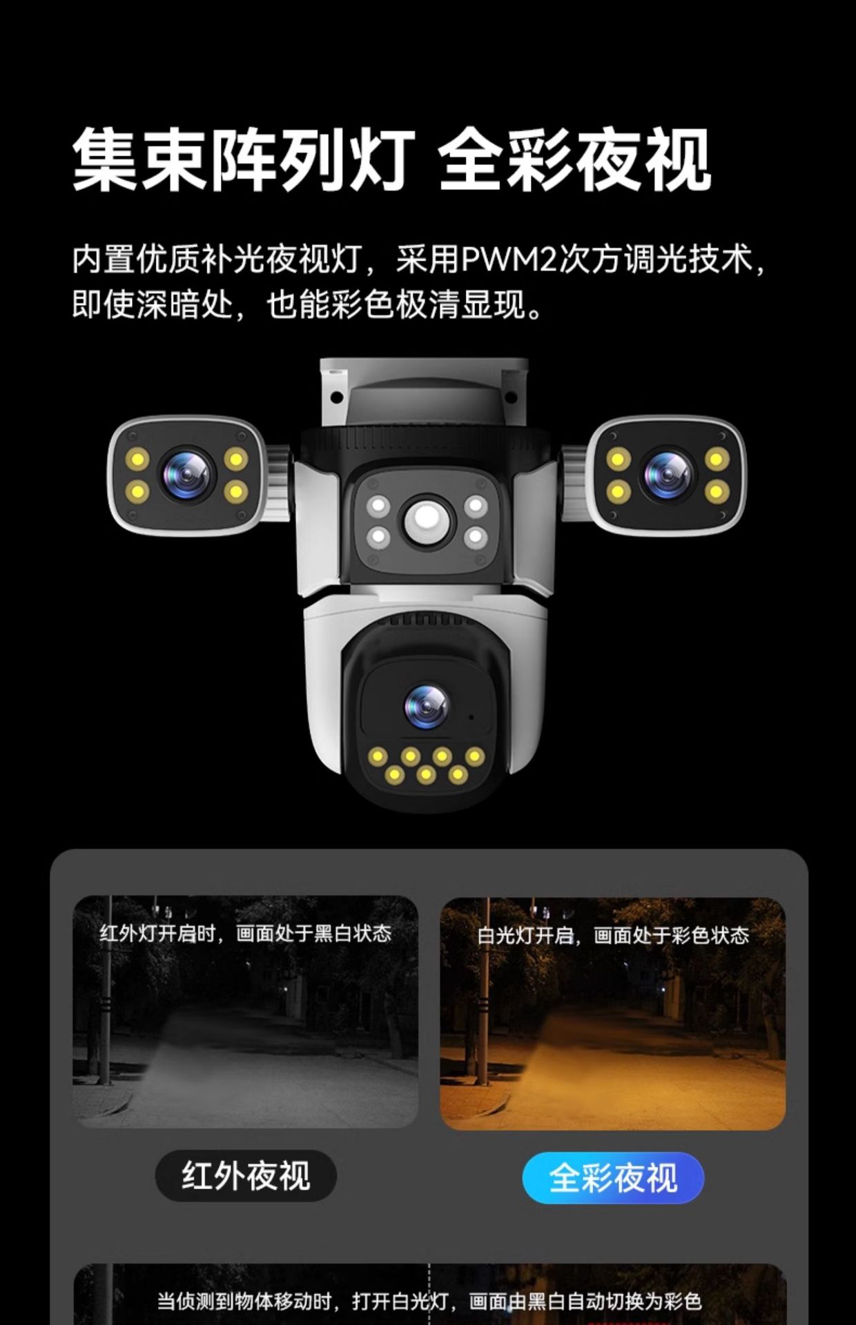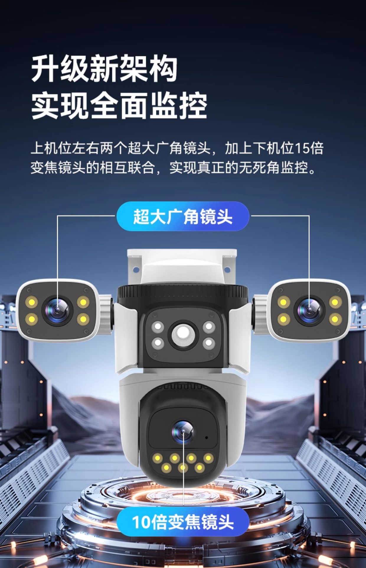 Cámara multipropósito transfronteriza para exteriores Cámara doméstica de doble imagen de tres lentes con conexión de bola de gran angular de 360 grados