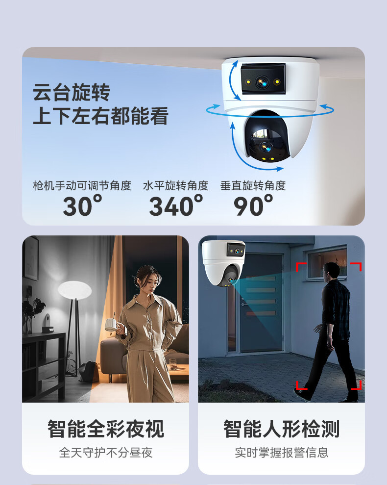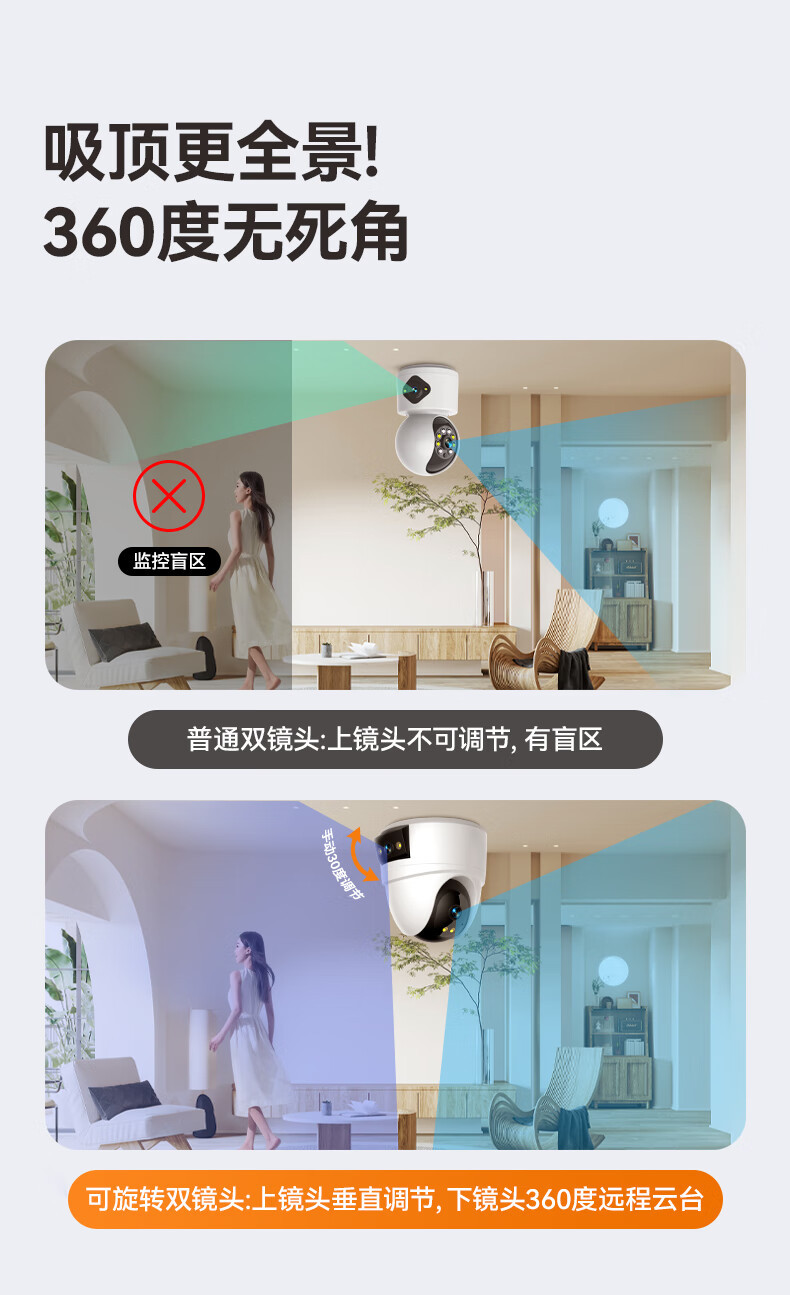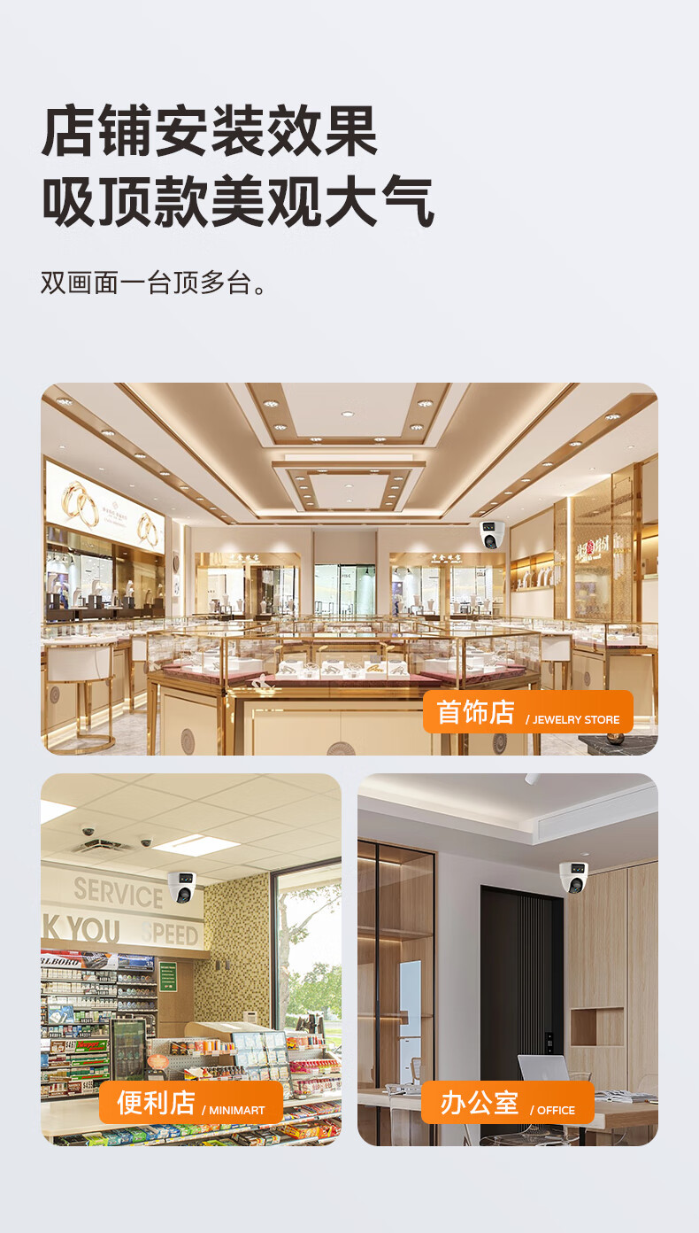 Cámara de vigilancia de alta definición para tiendas comerciales inalámbricas interiores sin conexión remota 360 grados sin esquina muerta