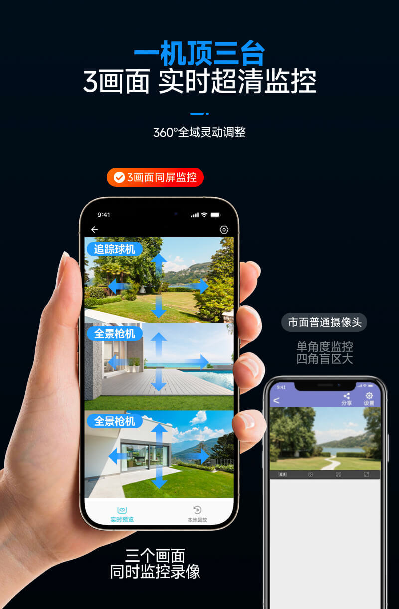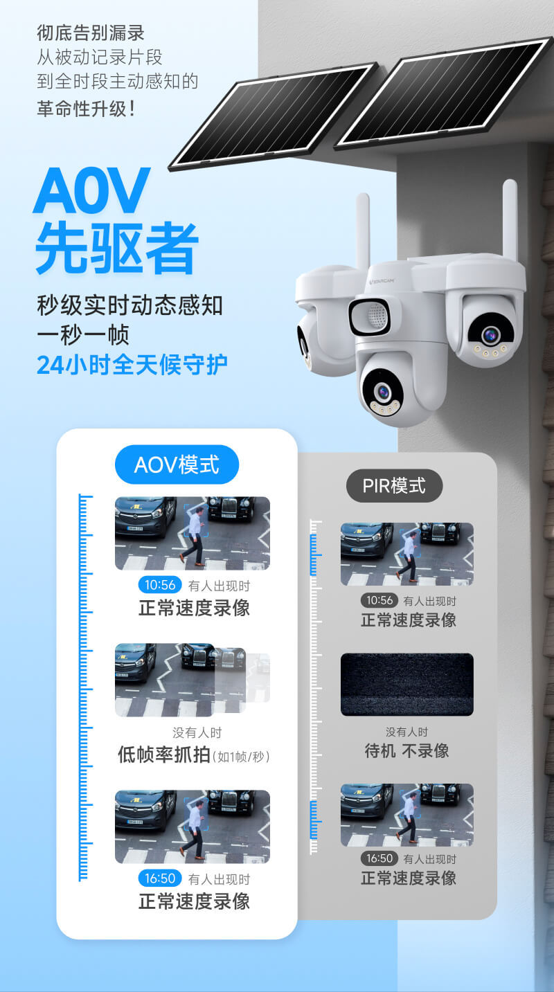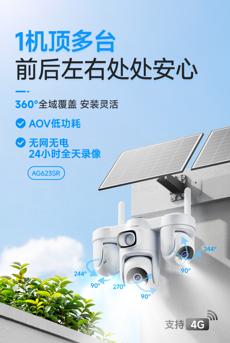 Bajo consumo de energía 4G sin flujo de tres imágenes AOV cámara de monitoreo solar al aire libre monitor remoto de visión nocturna