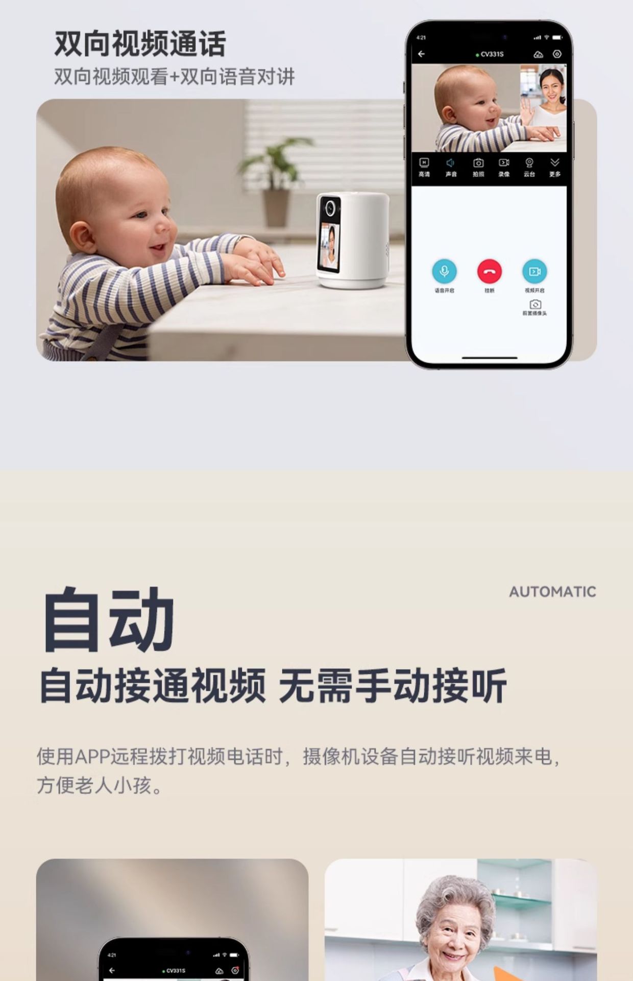24 años de cámara de video de llamada bidireccional con pantalla para cuidar a los ancianos y niños con una llamada de clic para monitor de visión nocturna