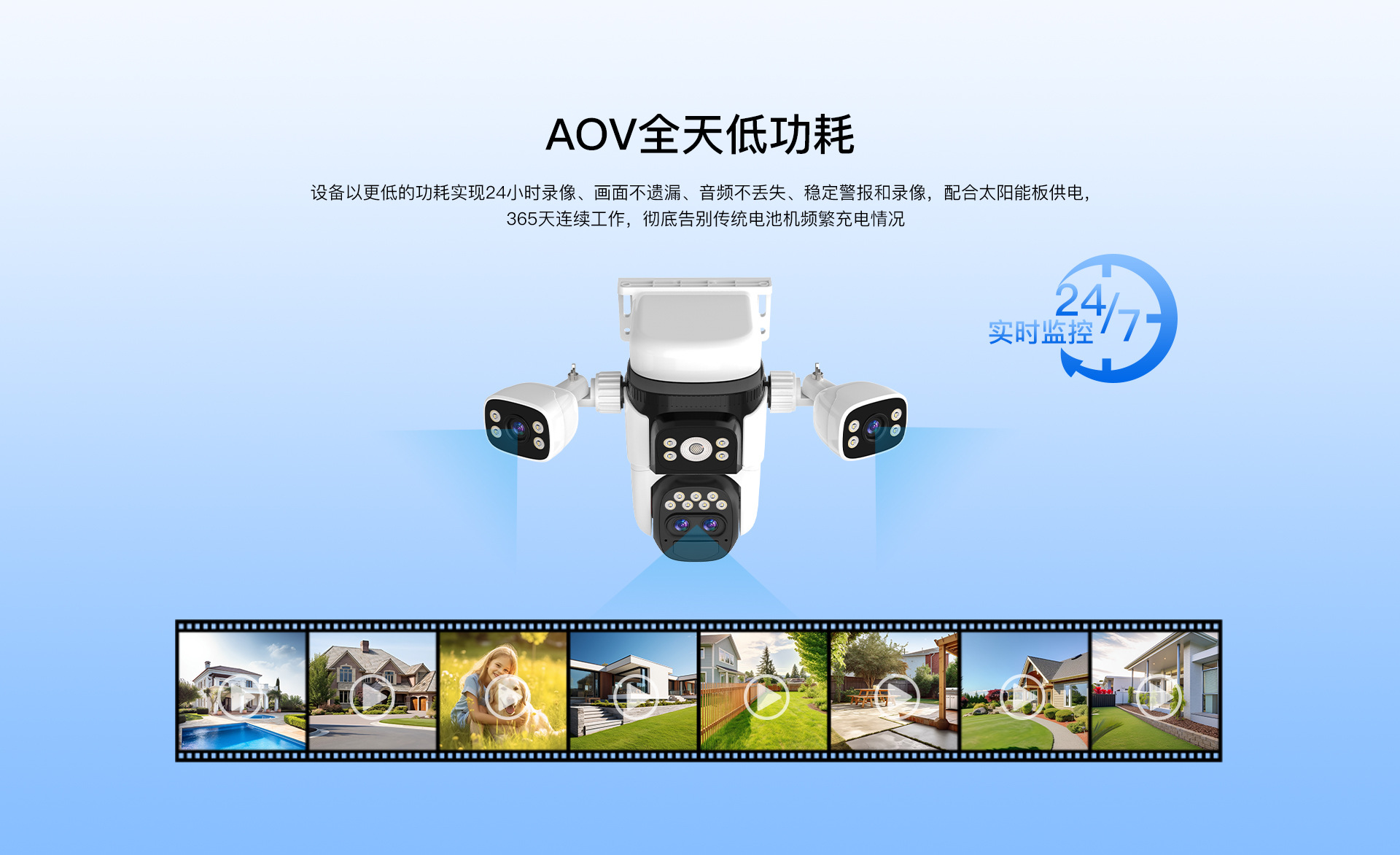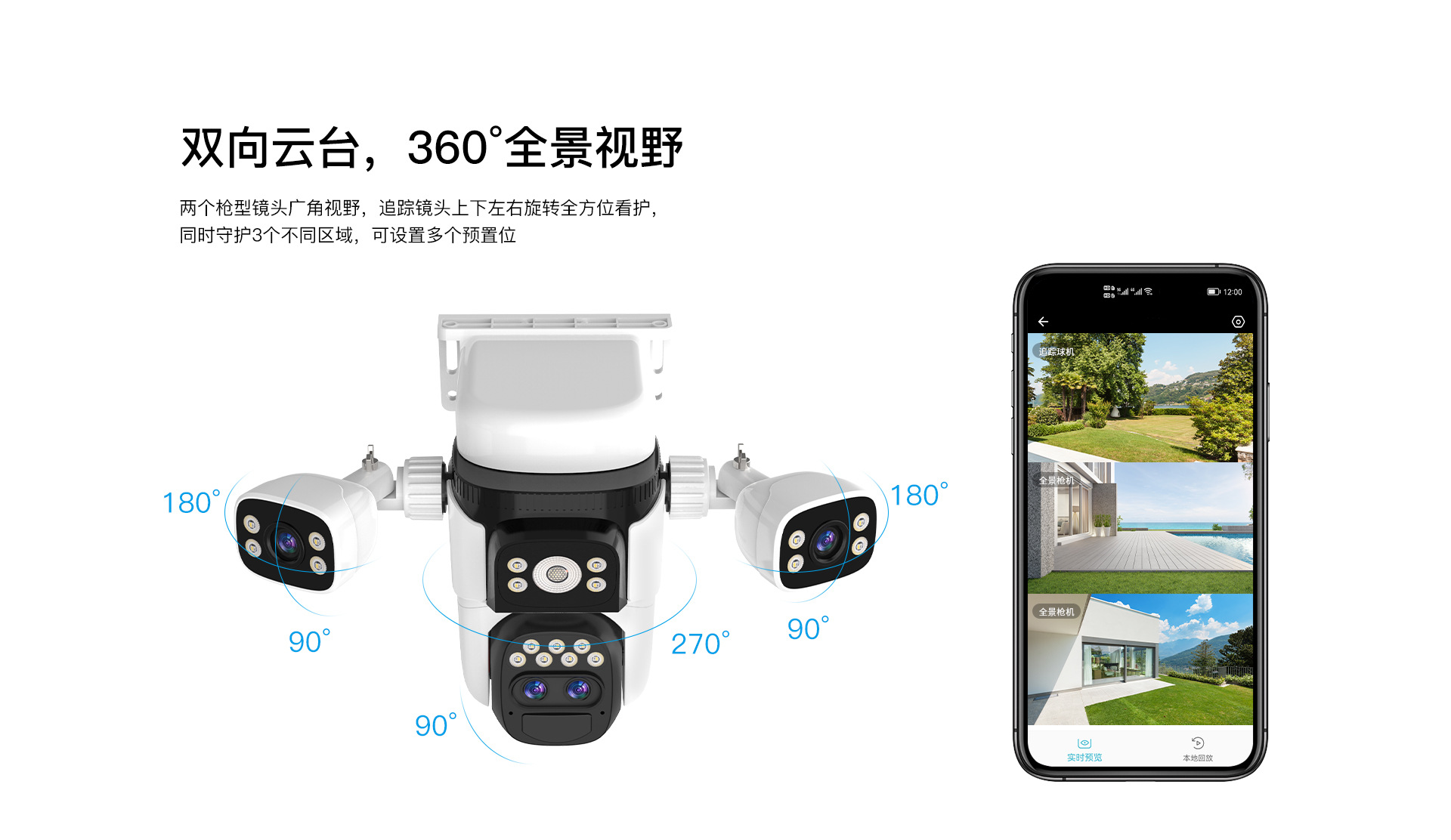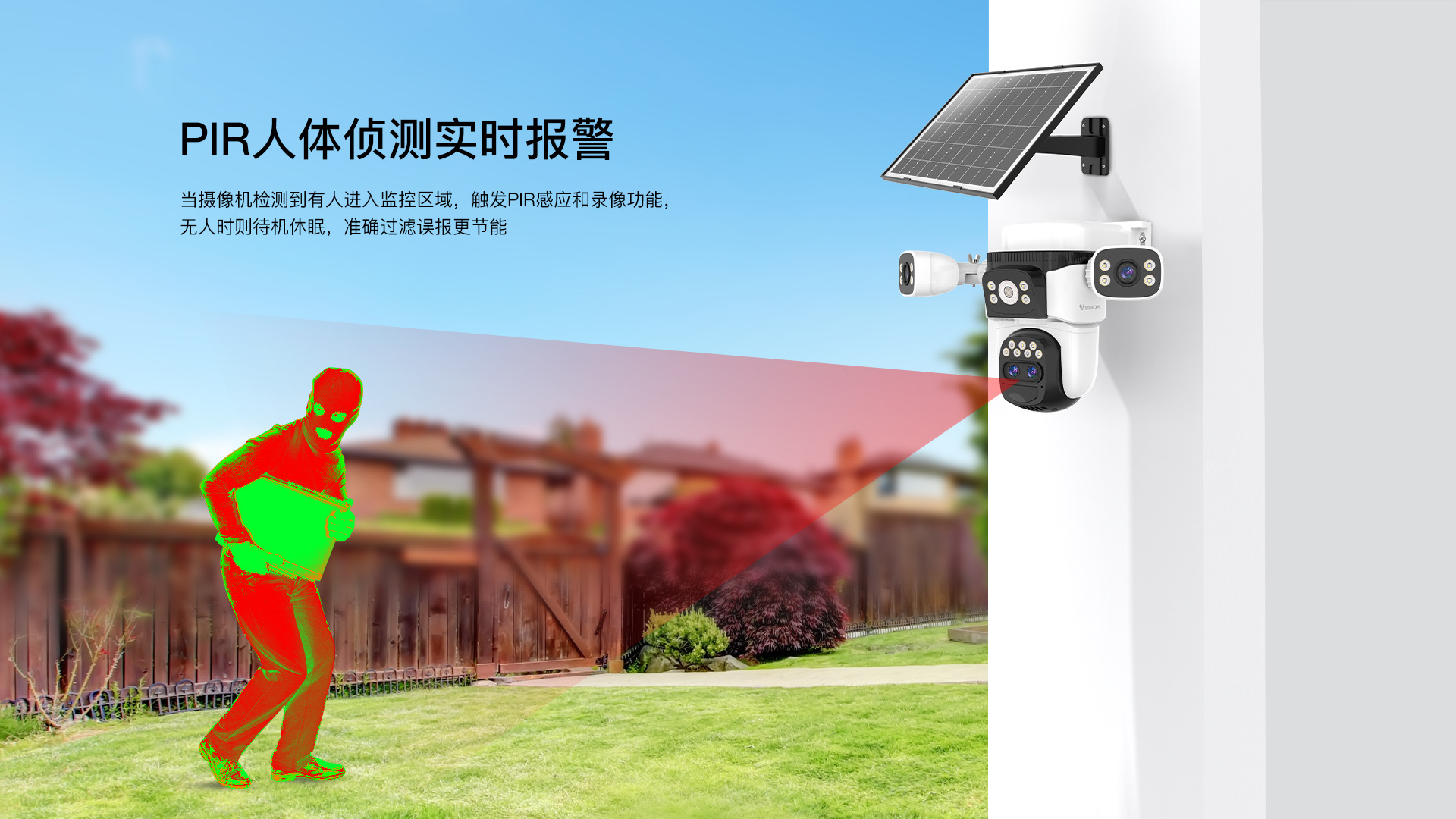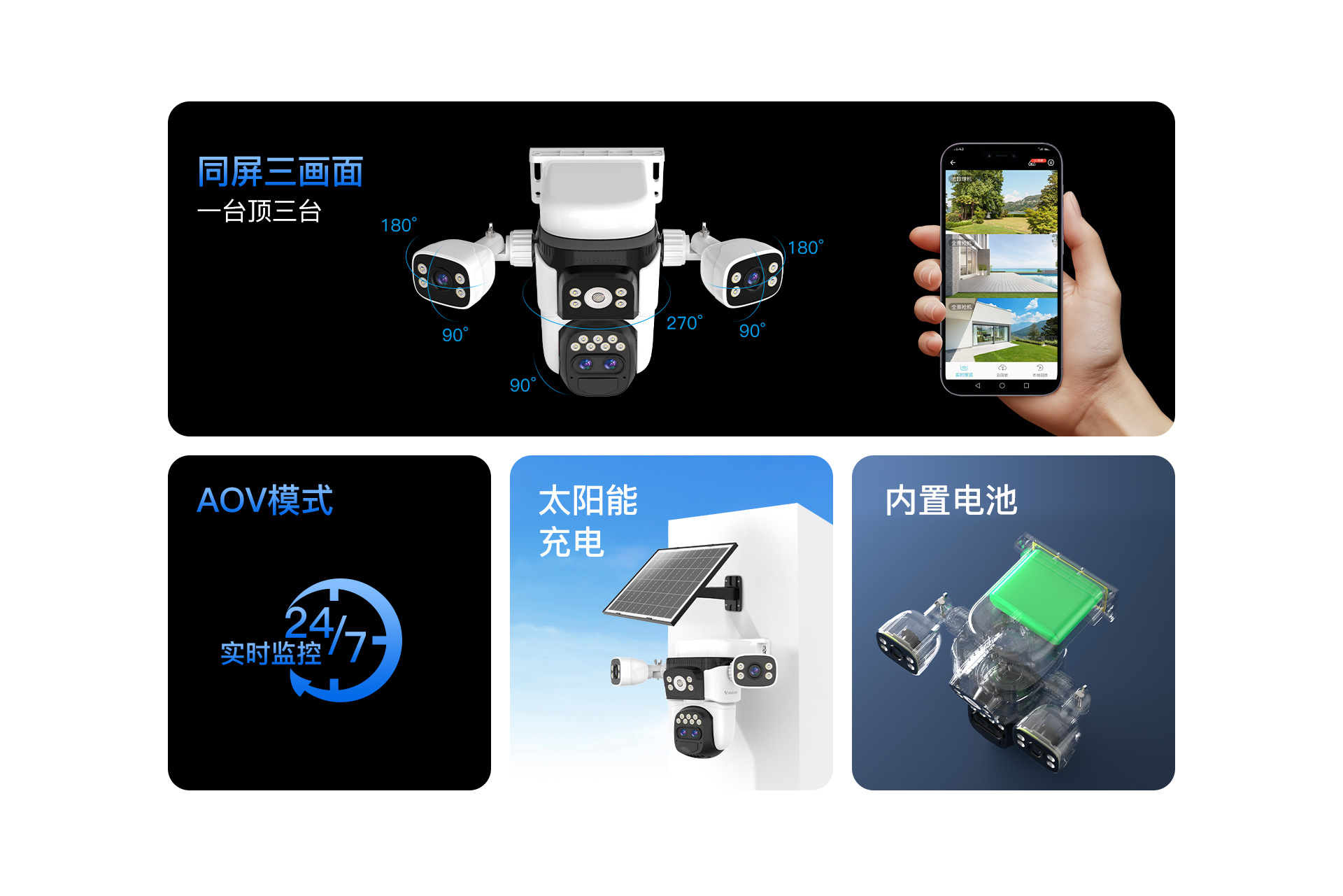 Cámara de vigilancia solar de tres pantallas al por mayor de fábrica Monitor sin electricidad y sin red para huerto al aire libre de ultra alta definición