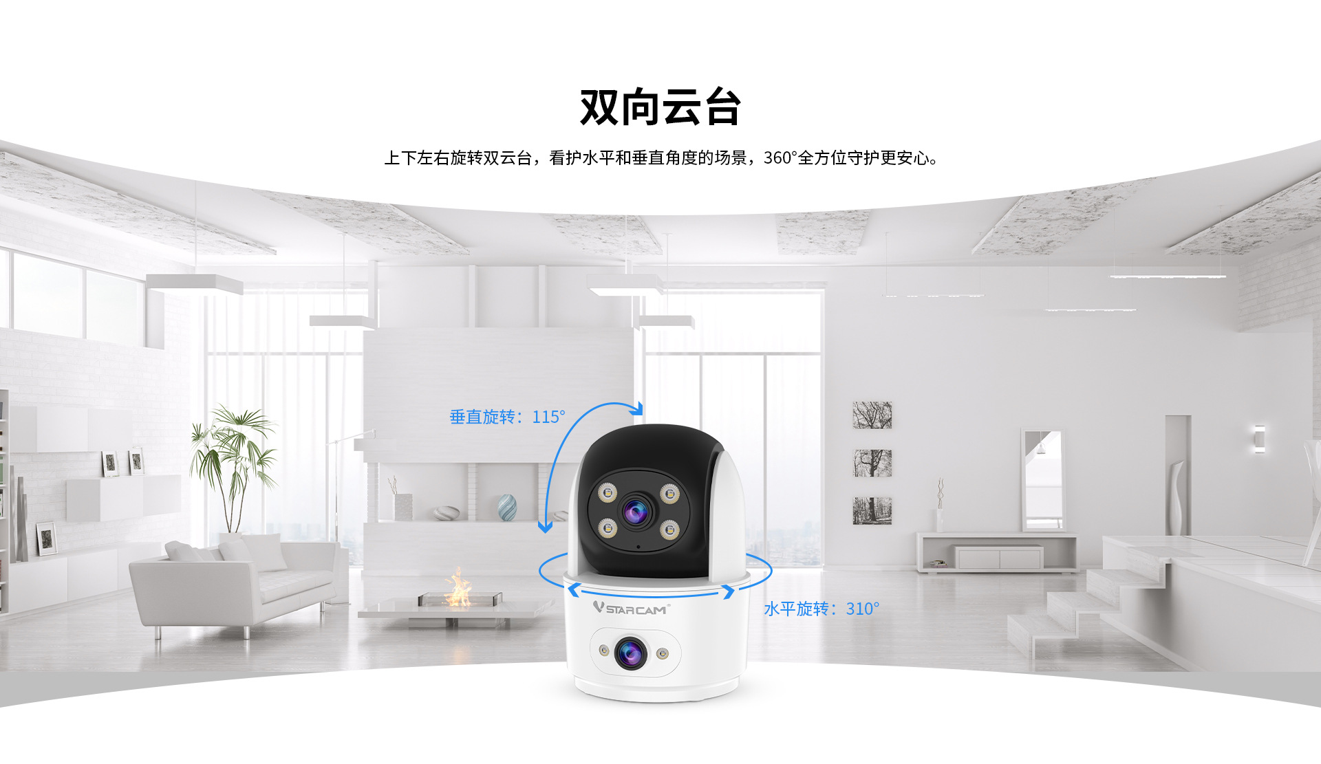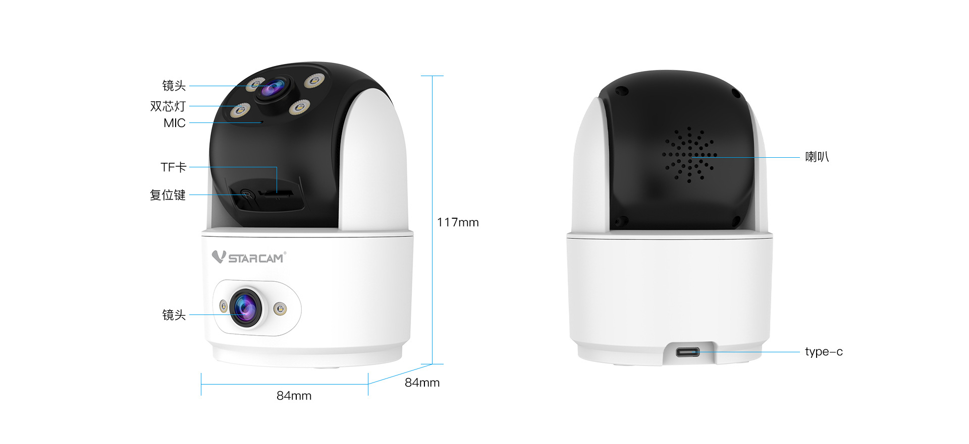 Procesamiento personalizado de cámara inalámbrica de red wifi de doble lente para interiores HD monitor de doble pantalla teléfono remoto
