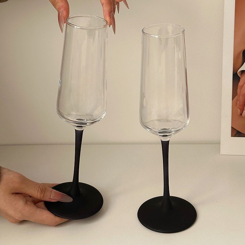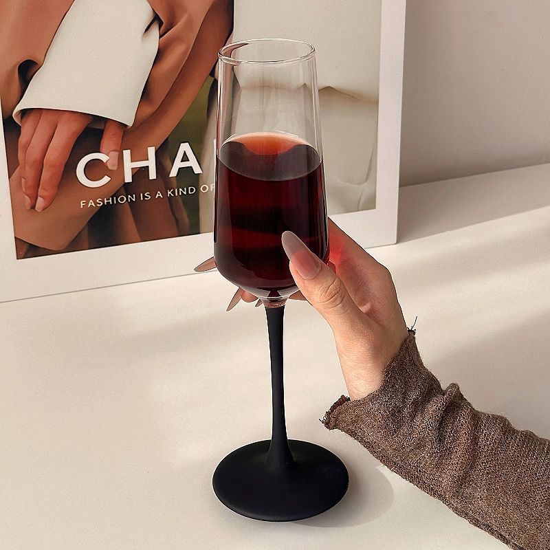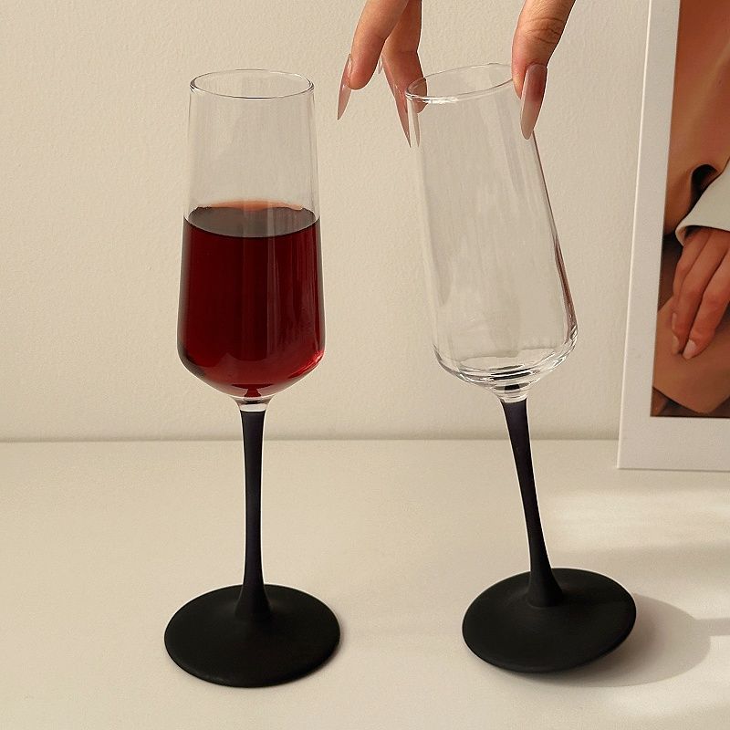 Taza de champagne negra esmerizada europea, taza de vidrio de cristal creativo de alto nivel de vino tinto, taza de vino espumante comercial
