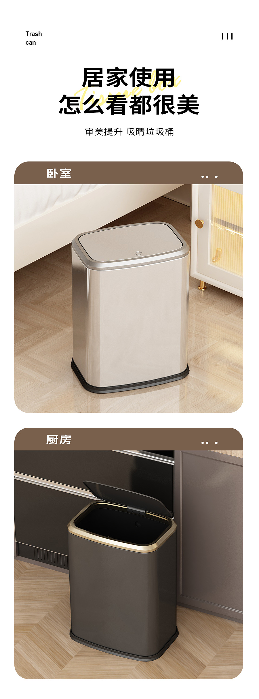 Acero inoxidable prensando la cubierta de la basura doméstica gran 15L cocina sala de estar hotel con cubierta nueva cesta sala de estar