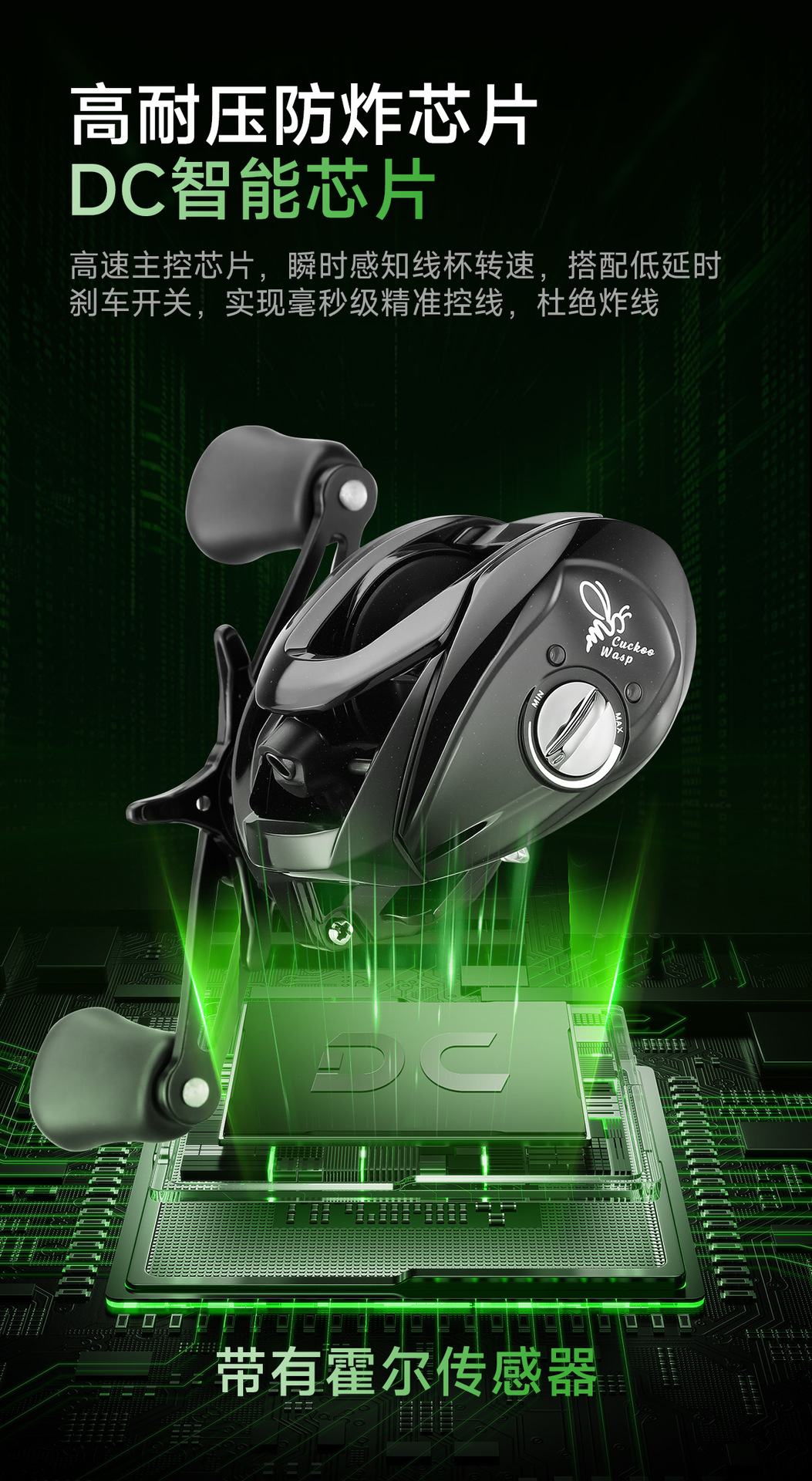 Haodun Qingfeng DC rueda de goteo de agua anti-explosión línea de pesca lanzamiento de rueda de pesca de freno electromagnético electrónico de larga distancia lanzamiento de rueda de pesca
