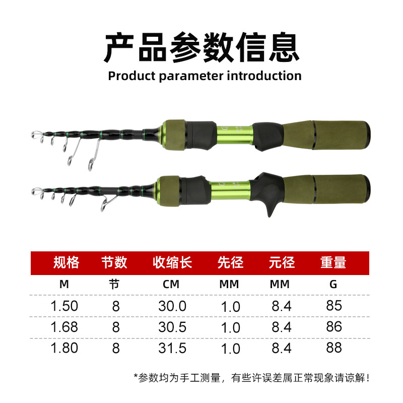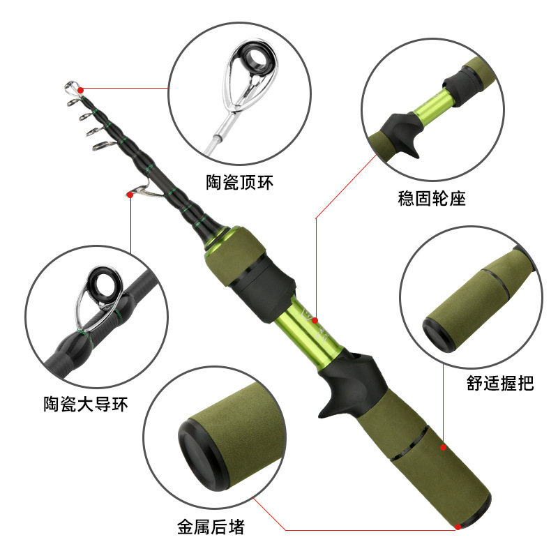 Zhenyi nuevo producto de carbono contractible barra de boca de caballo de diámetro de agarre de ejección rodilla de 1.8 m mango de arma de pesca de mango recto