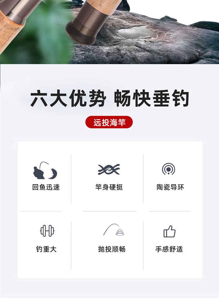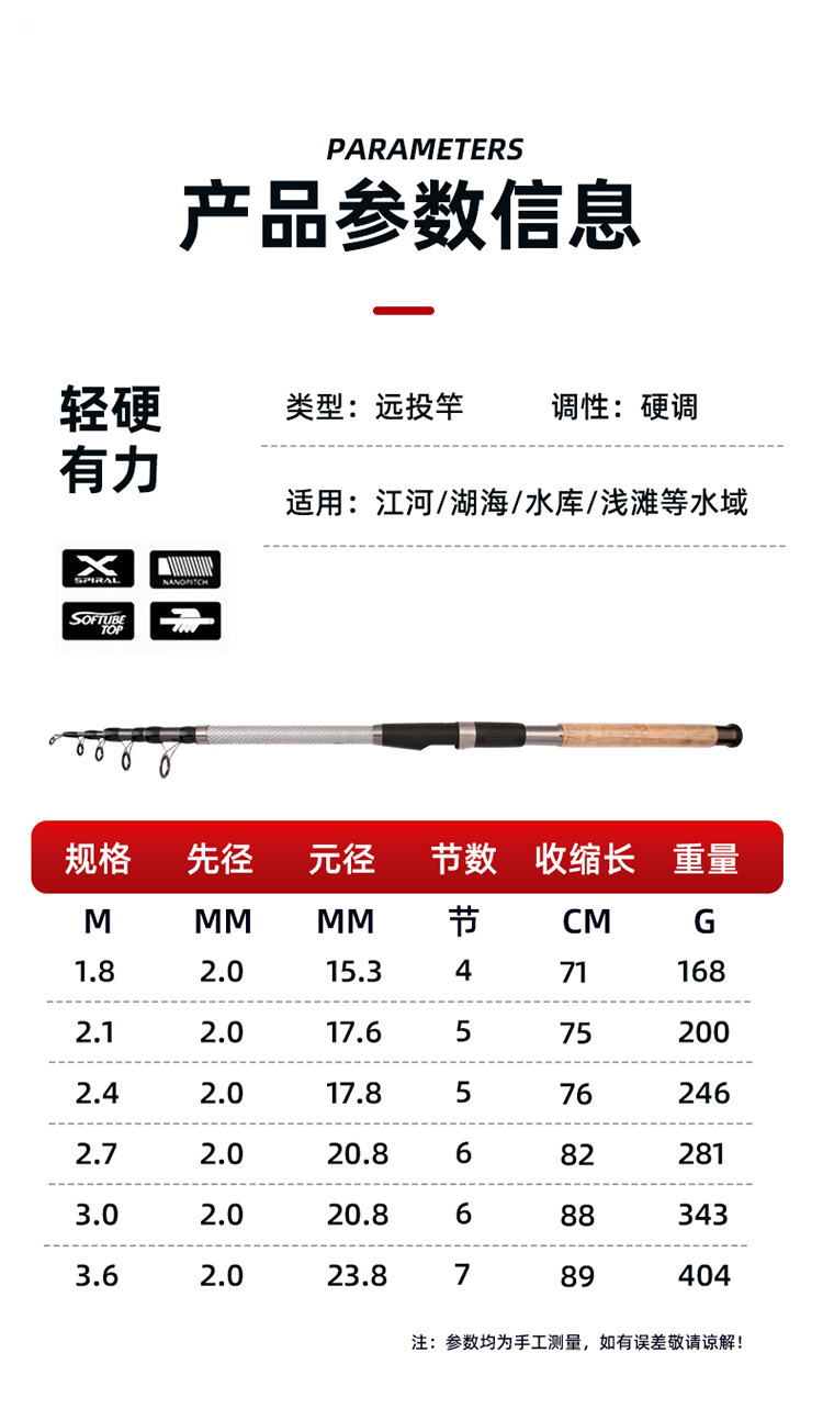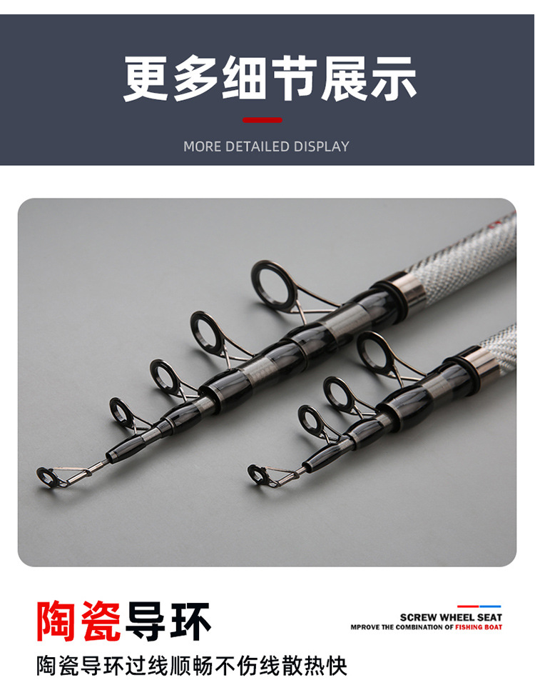 2.1 - 3.6m barra de lanzamiento de largo alcance, anillo de guía triangular, barra de lanzamiento de caña de pesca de tono duro, equipo de pesca al por mayor
