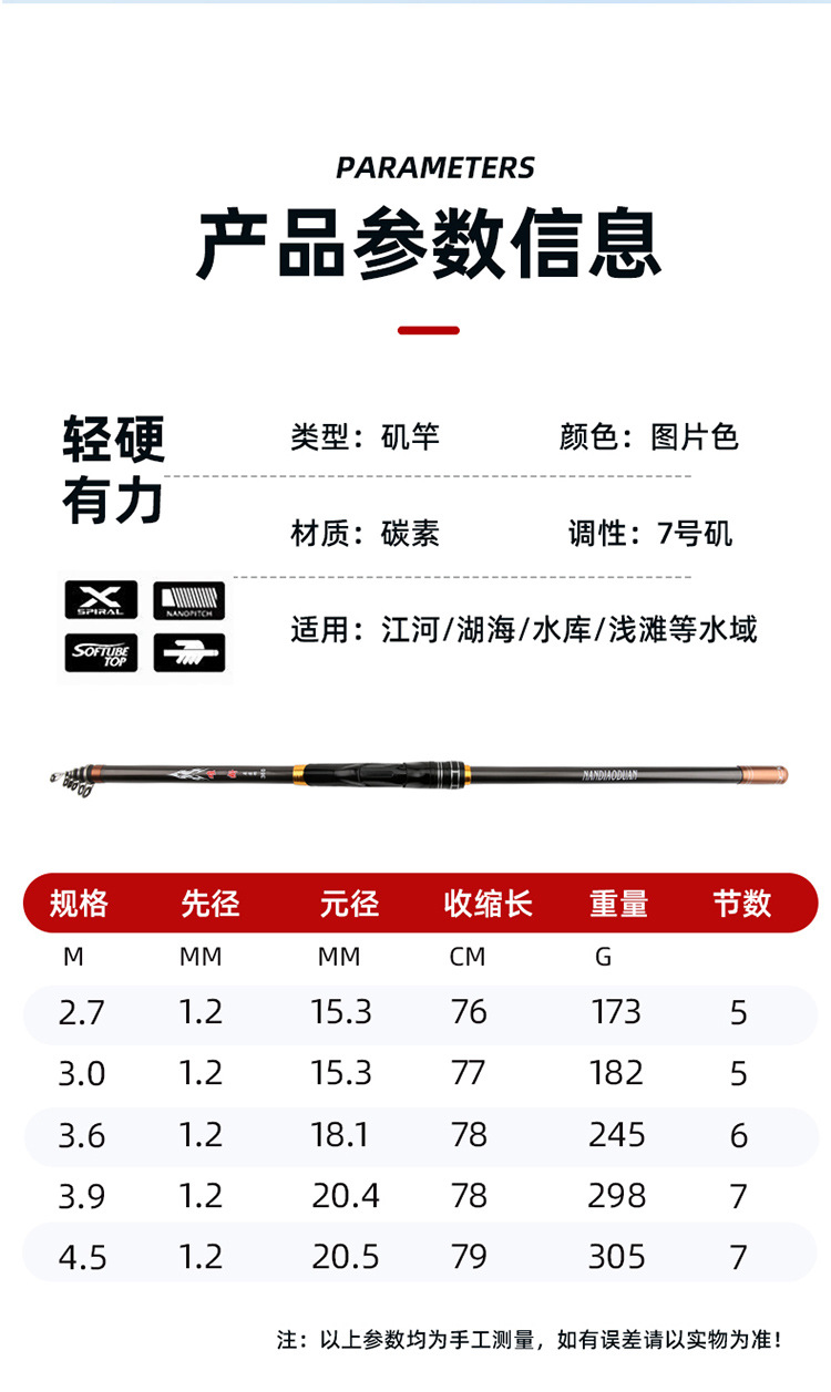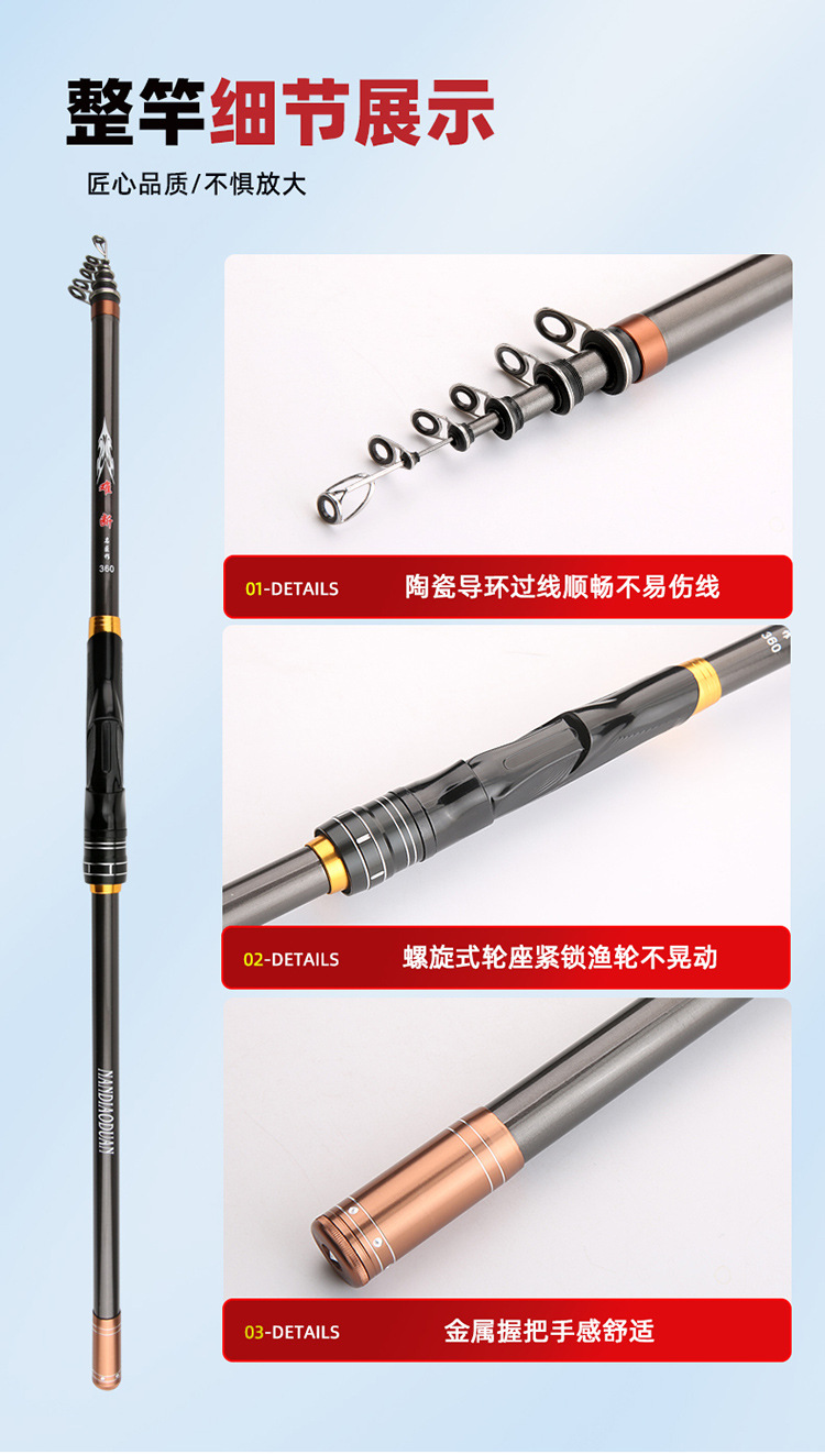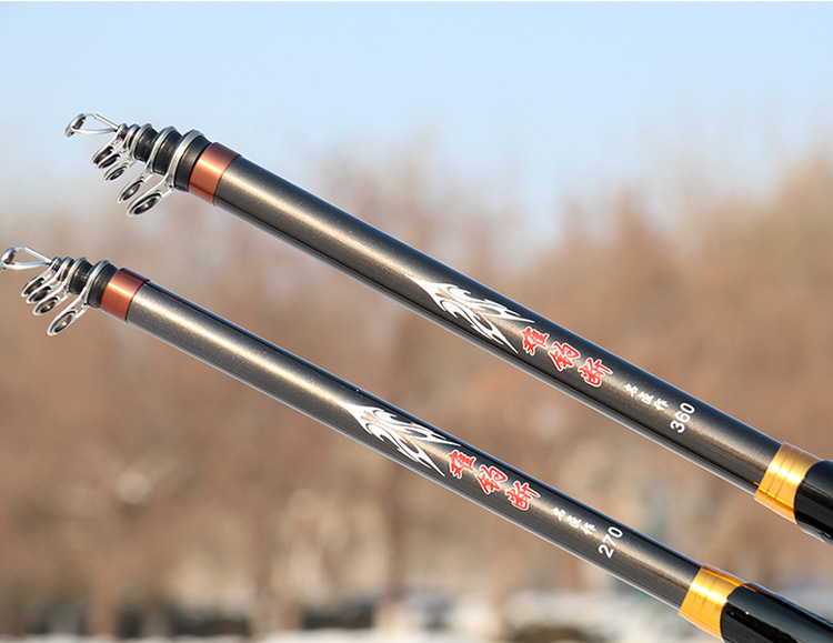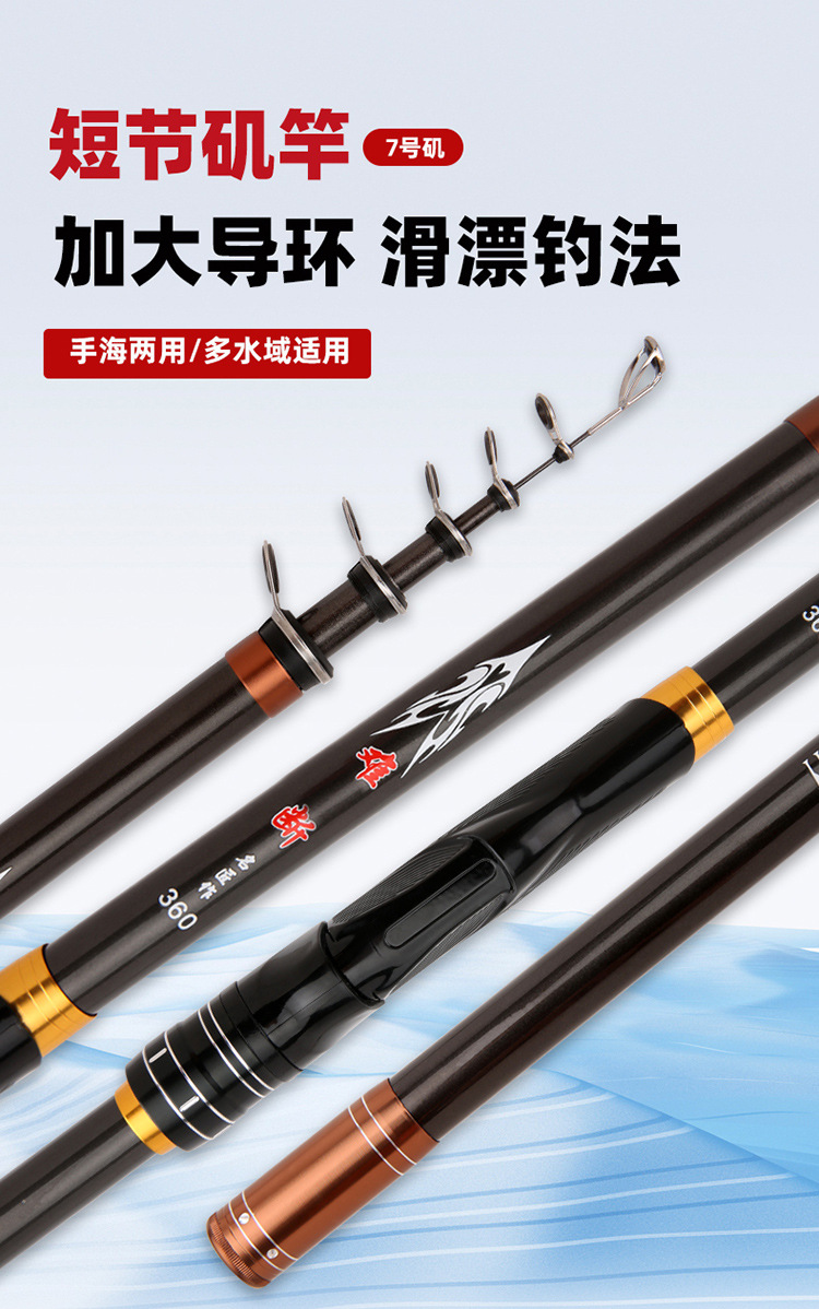 Nuevo N ° 7 varilla de pesca de roca de carbono 2,7-4,5 m Varilla de tiro largo Varilla de sección corta gran anillo de Guía de deslizamiento flotador mano mar de doble uso