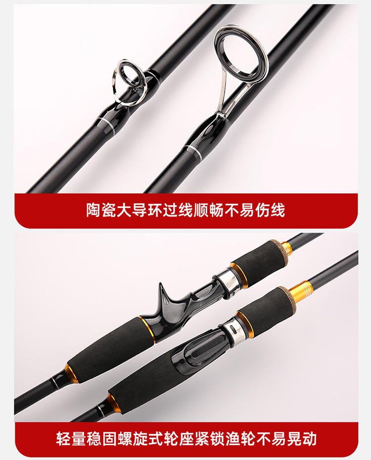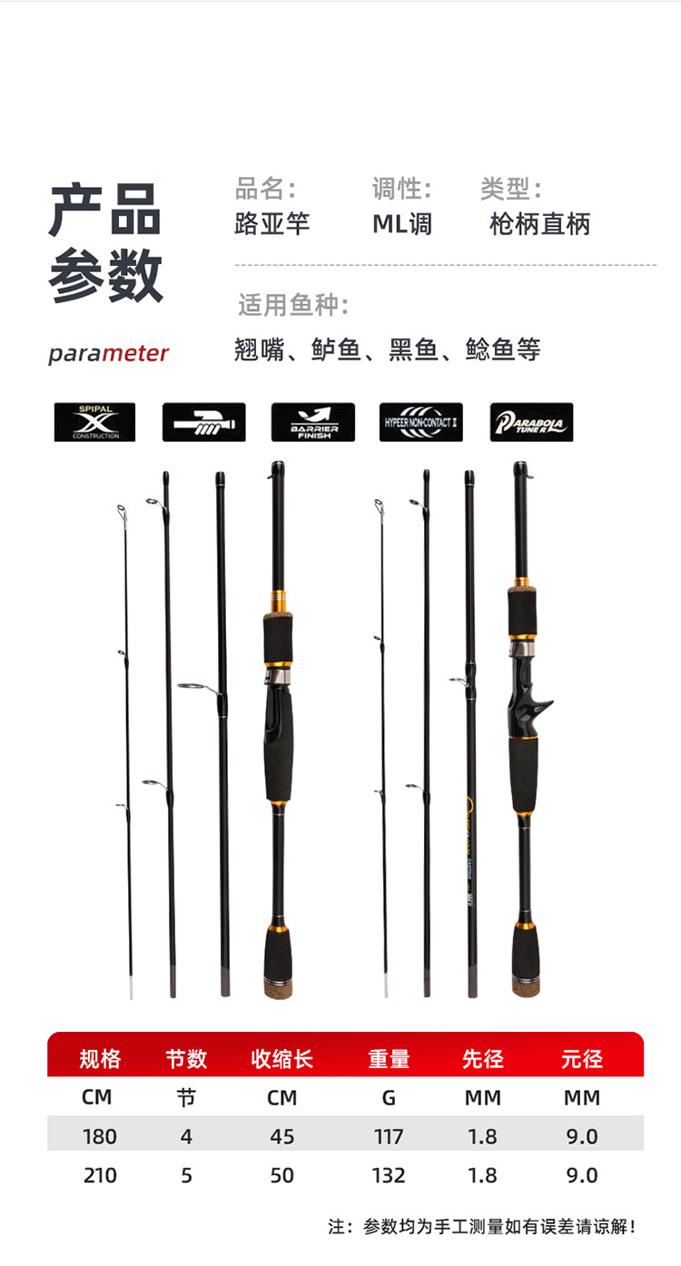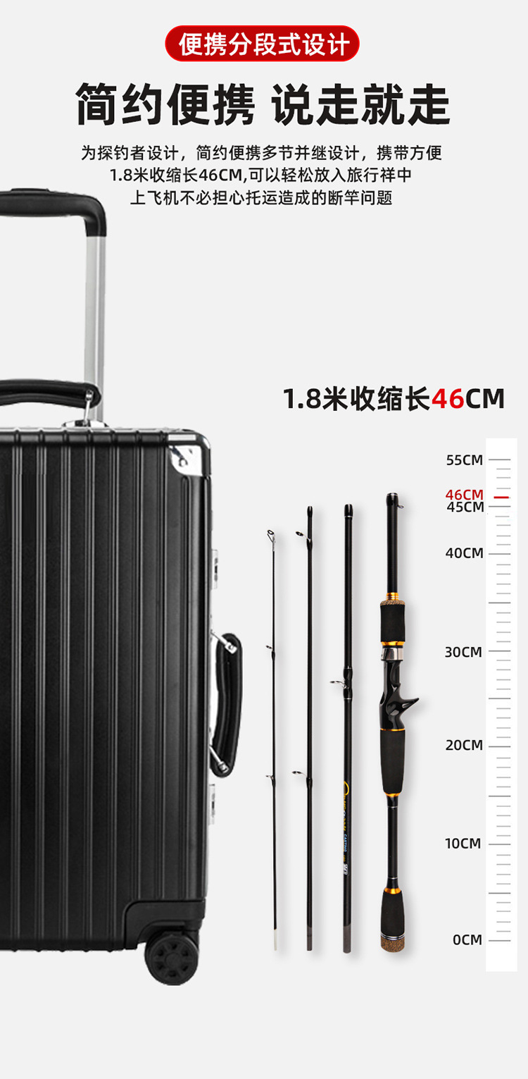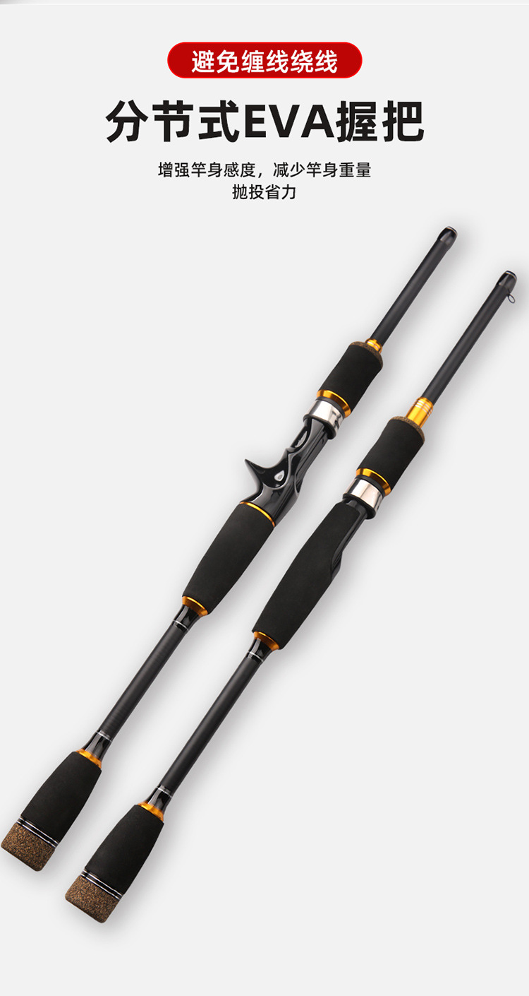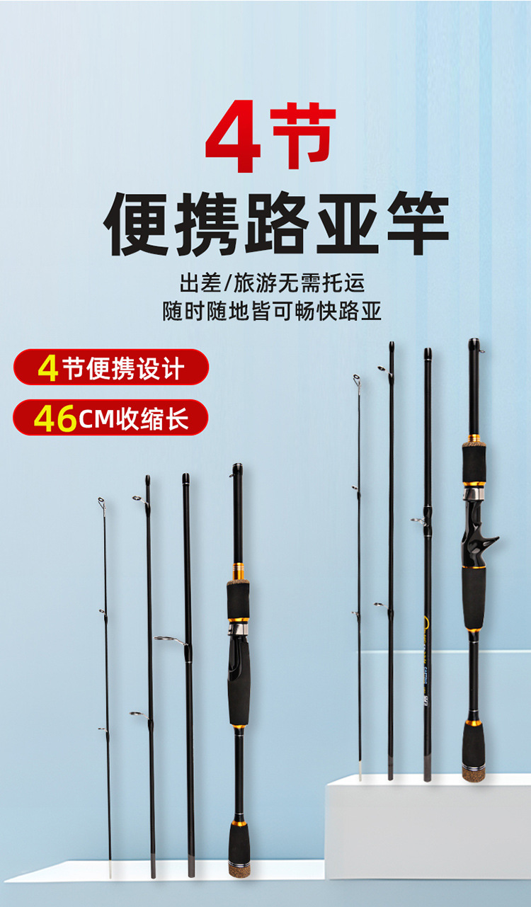 Varilla de carretera de varias secciones de carbono Zhenyi 1,8 metros 2,1 metros, sección de ajuste de cuatro secciones ML, varilla de boca de caballo, mango recto