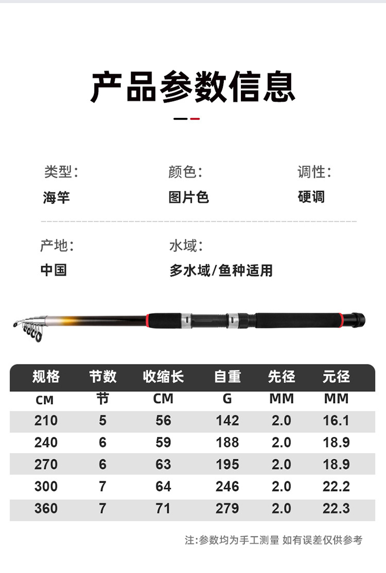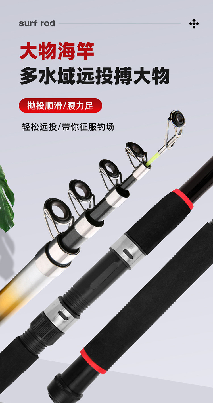 Caña de pescar de mar Caña de mar Aparejos de pesca Caña de lanzamiento de cañón 2.1M2.4M2.7M3.0M Fábrica de caña de mar de FRP al por mayor transfronterizo