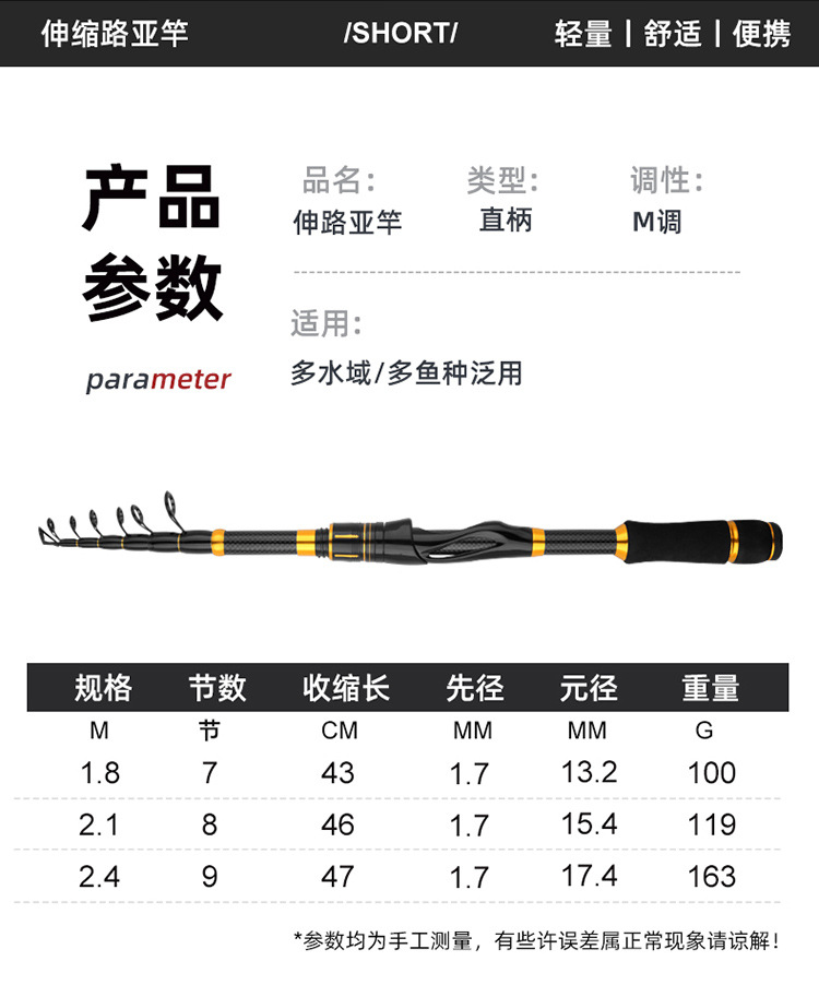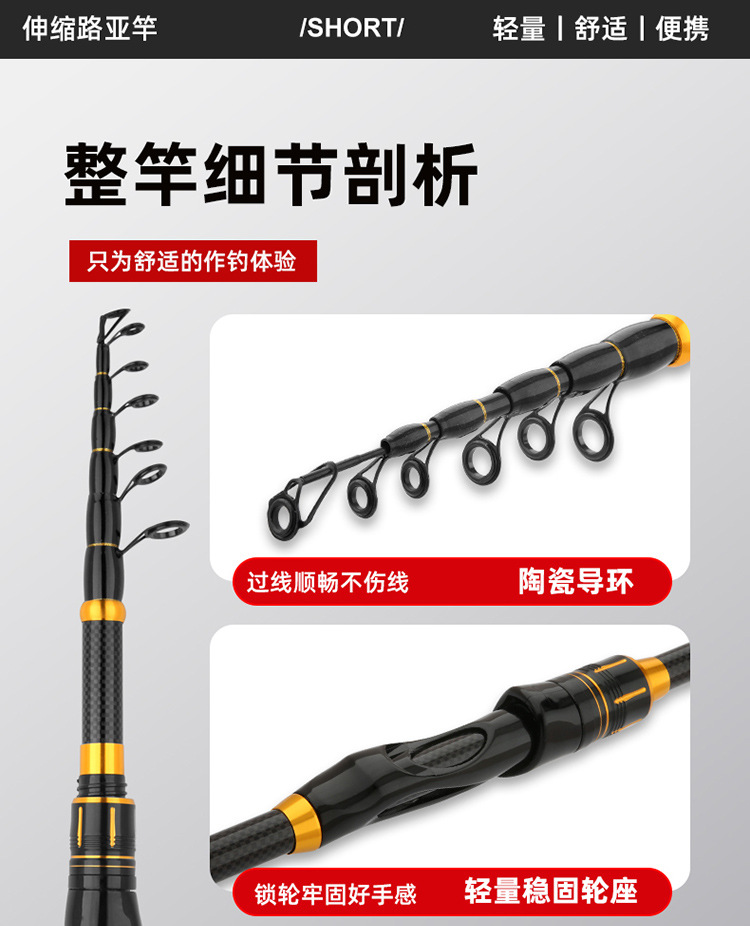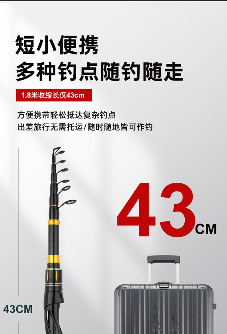 Retractable rodilla de pesca portátil 43 cm transfronteriza caña de pesca de carbono artilugio de pesca duro ajuste 1.8 al por mayor