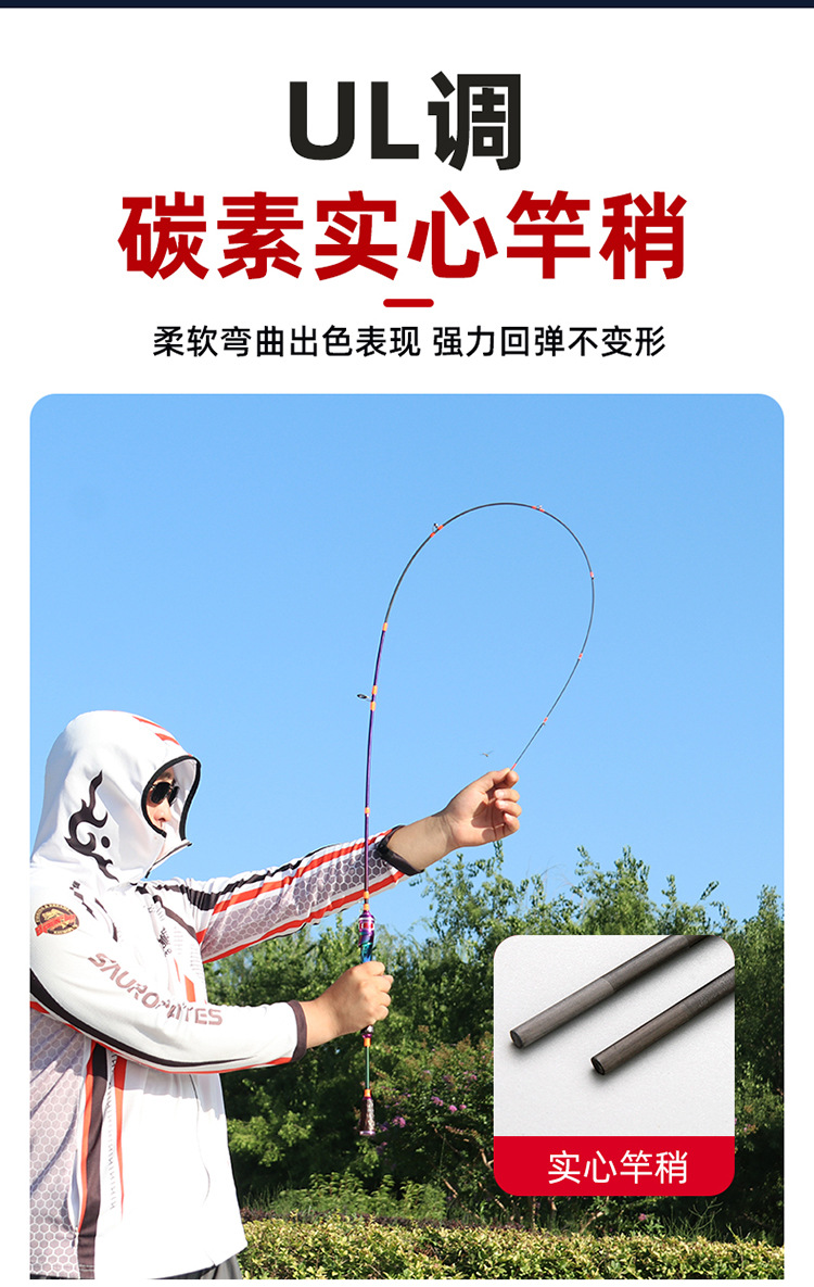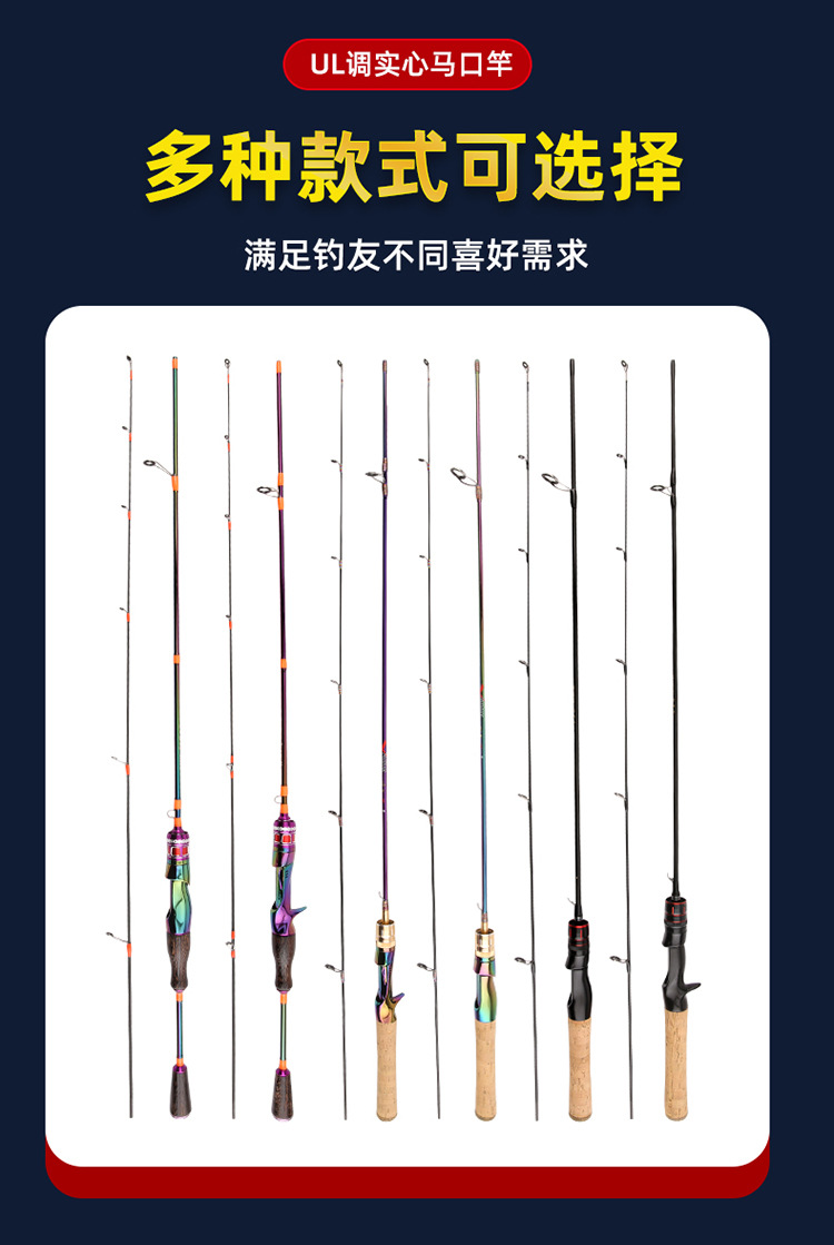 Nueva varilla de boca de caballo de carbono, tira blanca, Micro UL ajustable varilla de pesca de madera maciza, varilla sólida, engranaje de pesca de recubrimiento ligeramente galvanizado