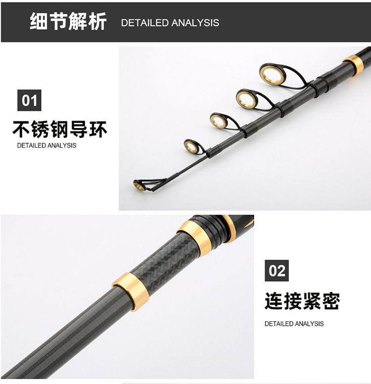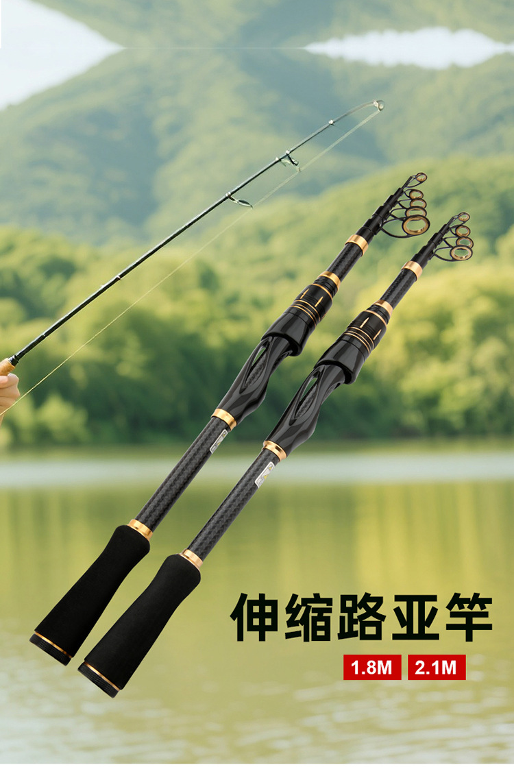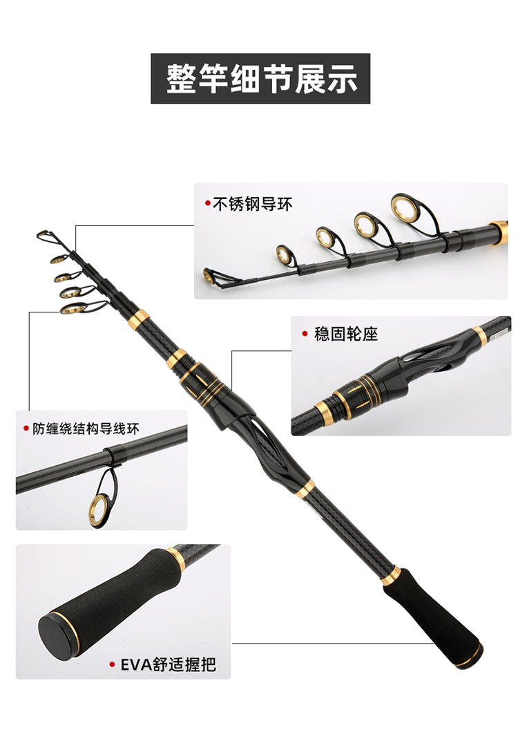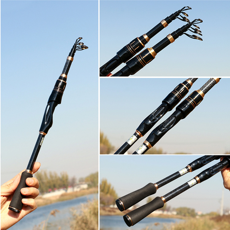 Caña de pesca de carbono de larga distancia caña de mar tipo palo de caña de pesca retráctil mango de arma retráctil palo de pesca retráctil mango recto portátil