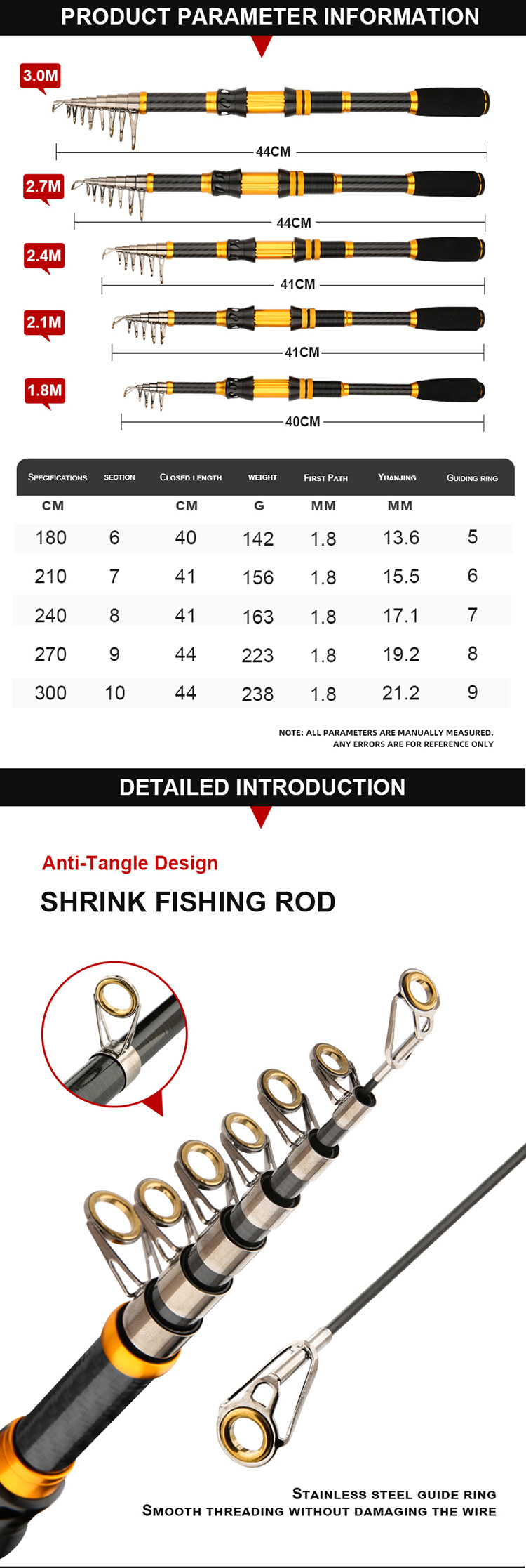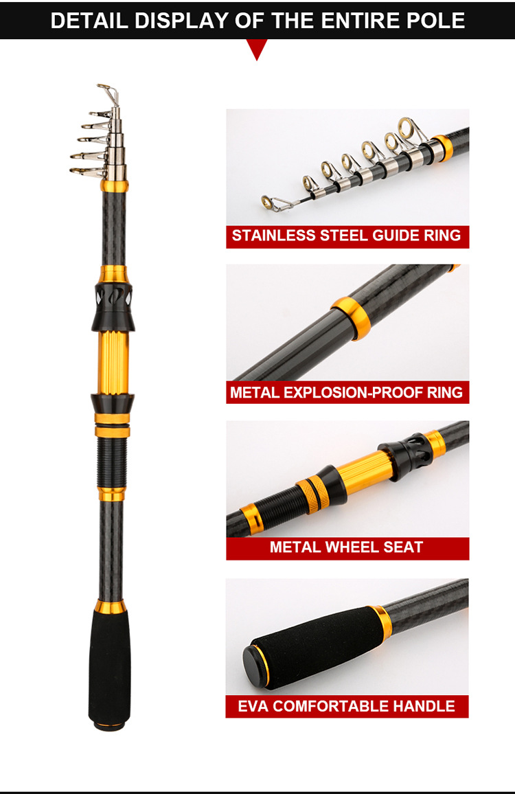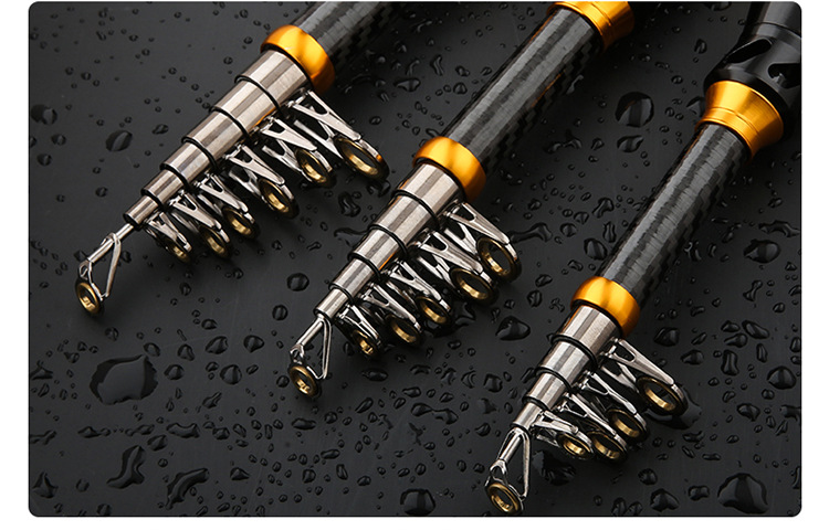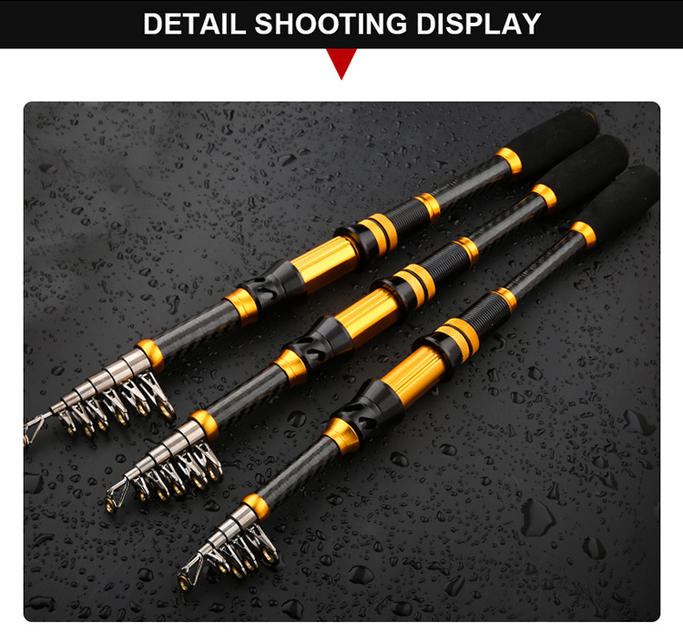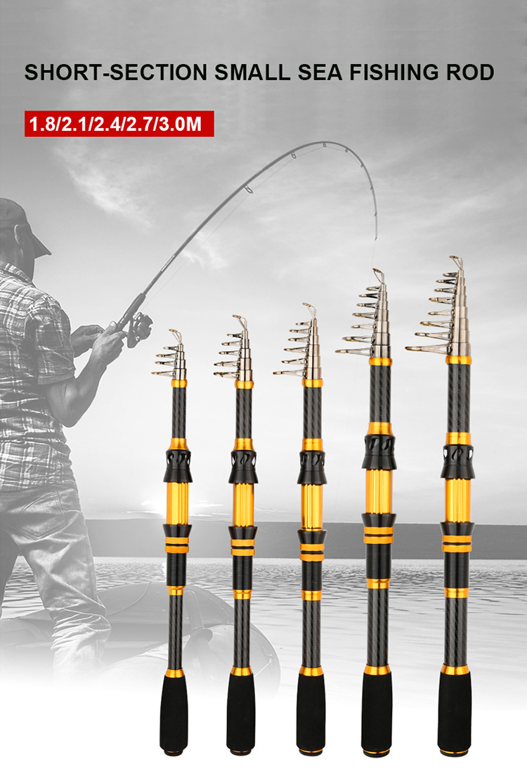 Oro negro carbono retráctil portátil varilla de mar de ajuste duro varilla de caña de pesca retráctil cadena de suministro fábrica de suministro al por mayor