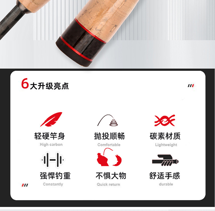 Zhenyi Luya varilla M tono de carbono Luya varilla 1.8 - 2.4m boca levantada para jugar caña de pesca negra tela de carbono cruzada caña de pesca