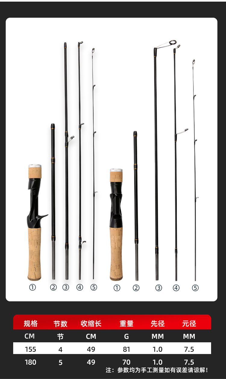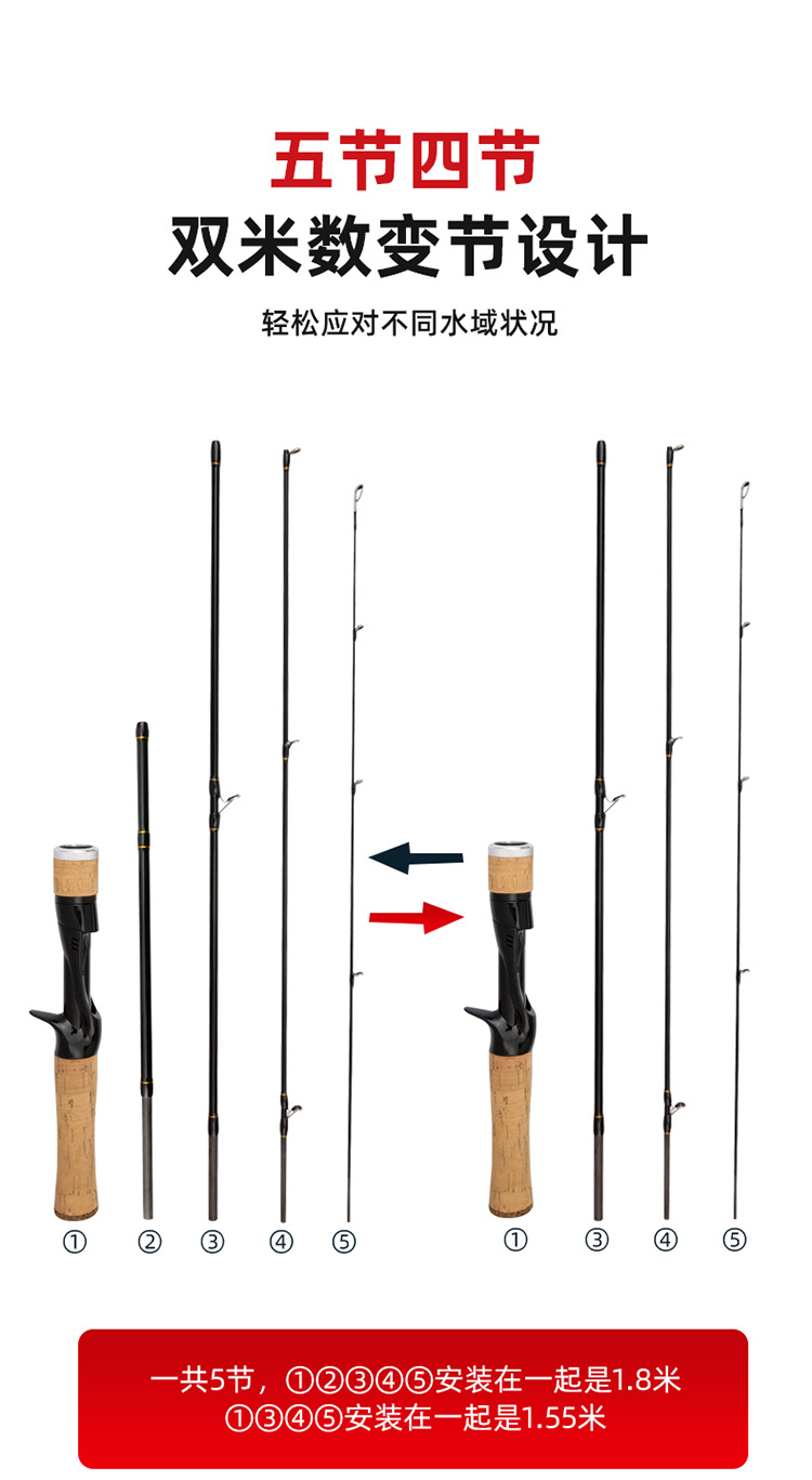 Cara de boca de caballo de varias secciones Caña de pescar transfronteriza portátil UL Aparejos de pesca 1.8 m Carbon Multi-inserto Agarre eva Mango recto Luya