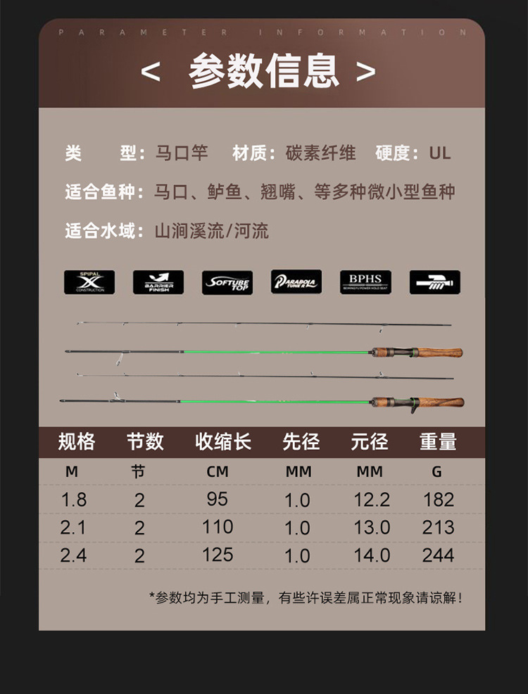 Caña de caballo de madera sólida ultra suave ul microcaña Luya 1.68m 1.8m 1.98m material de carbono mango recto