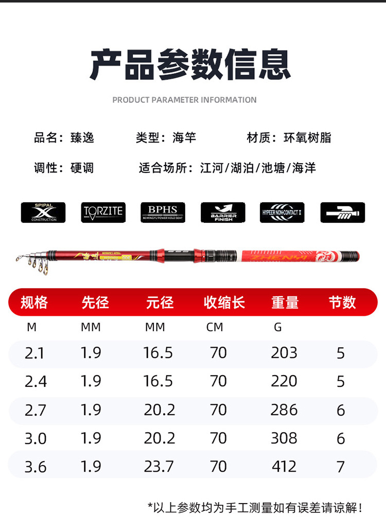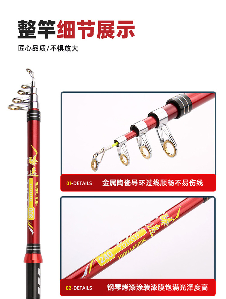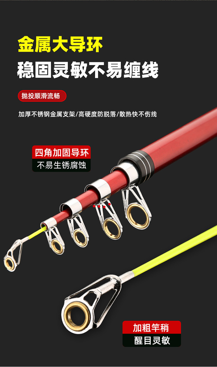 2.1 - 3.6m barra de lanzamiento de larga distancia barra de lanzamiento ligera y dura barra de pesca anillo guía de acero inoxidable