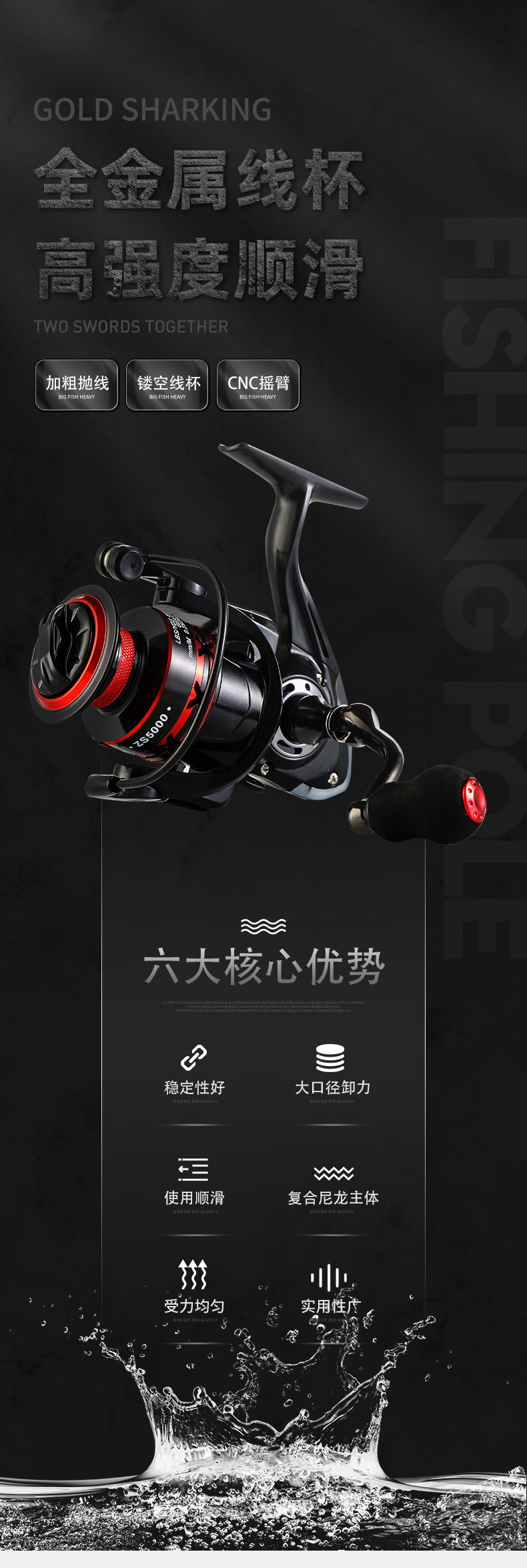 Golden Shark King carrete de pesca todo el metal rueda giratoria carrete de pesca tiro largo Luya ancla carrete de pesca rueda de polo mar