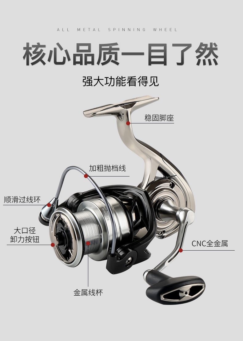 Todo metal anti-retorno de agua de mar rodamiento cerrado tipo tornillo en rueda giratoria rueda de línea de pesca caña de mar barco de pesca equipo de pesca